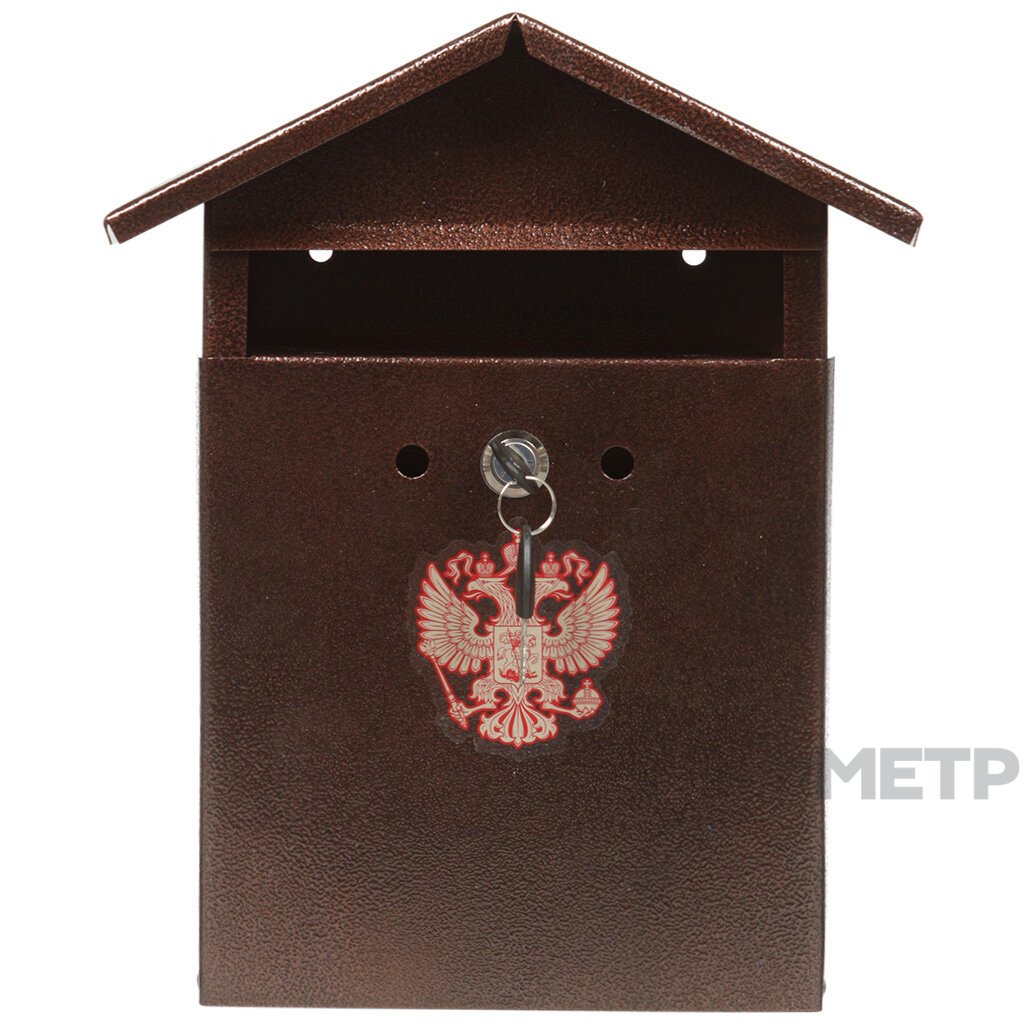 Почтовый ящик Домик-Элит коричневый с замком предназначен для персонального использования в доме. Изделие имеет классический вид с отверстием для почты. Устанавливается на фасад жилища, ограду или же калитку. Крепится на заднюю стенку ящика. Страна производитель - РФ. Цвет — коричневый.
