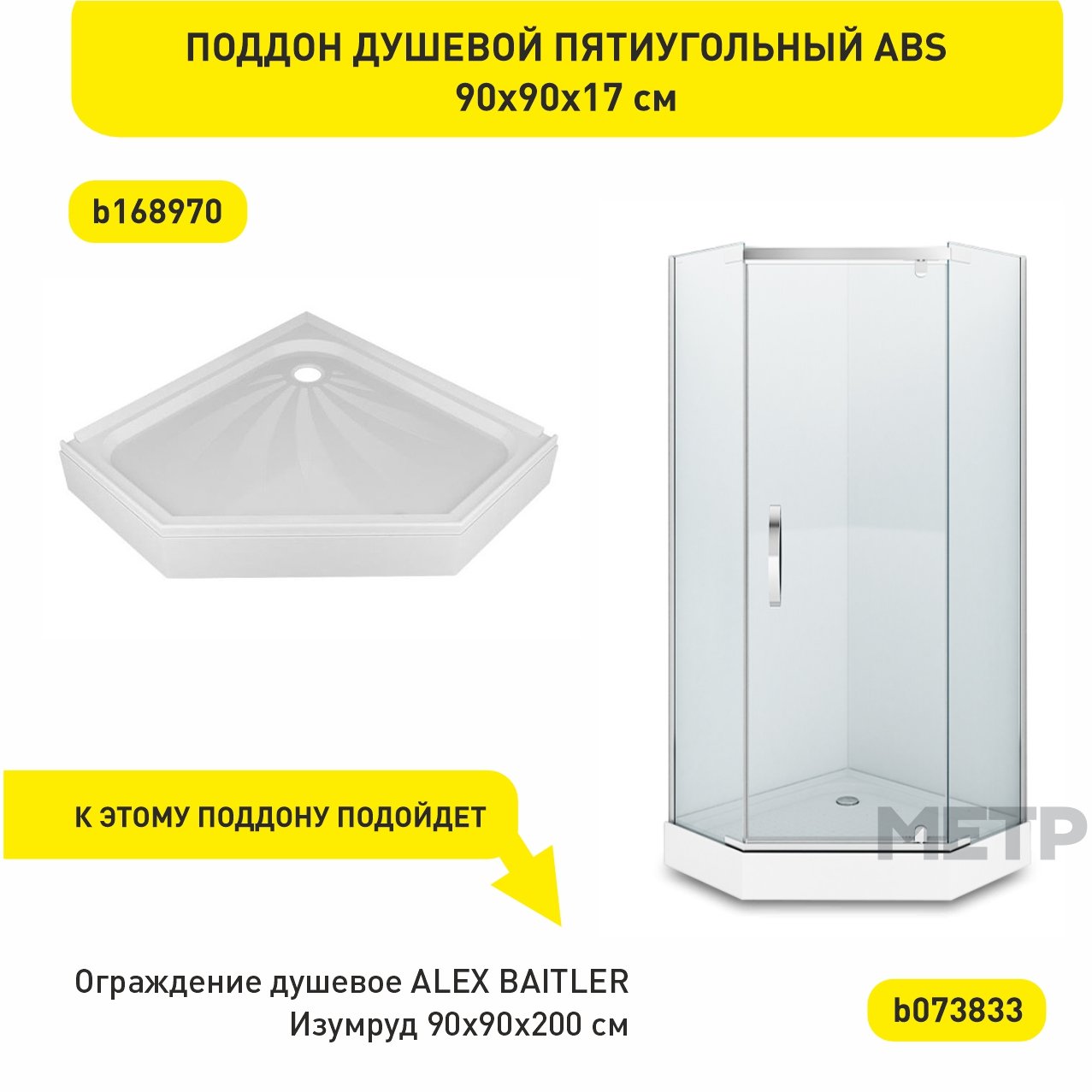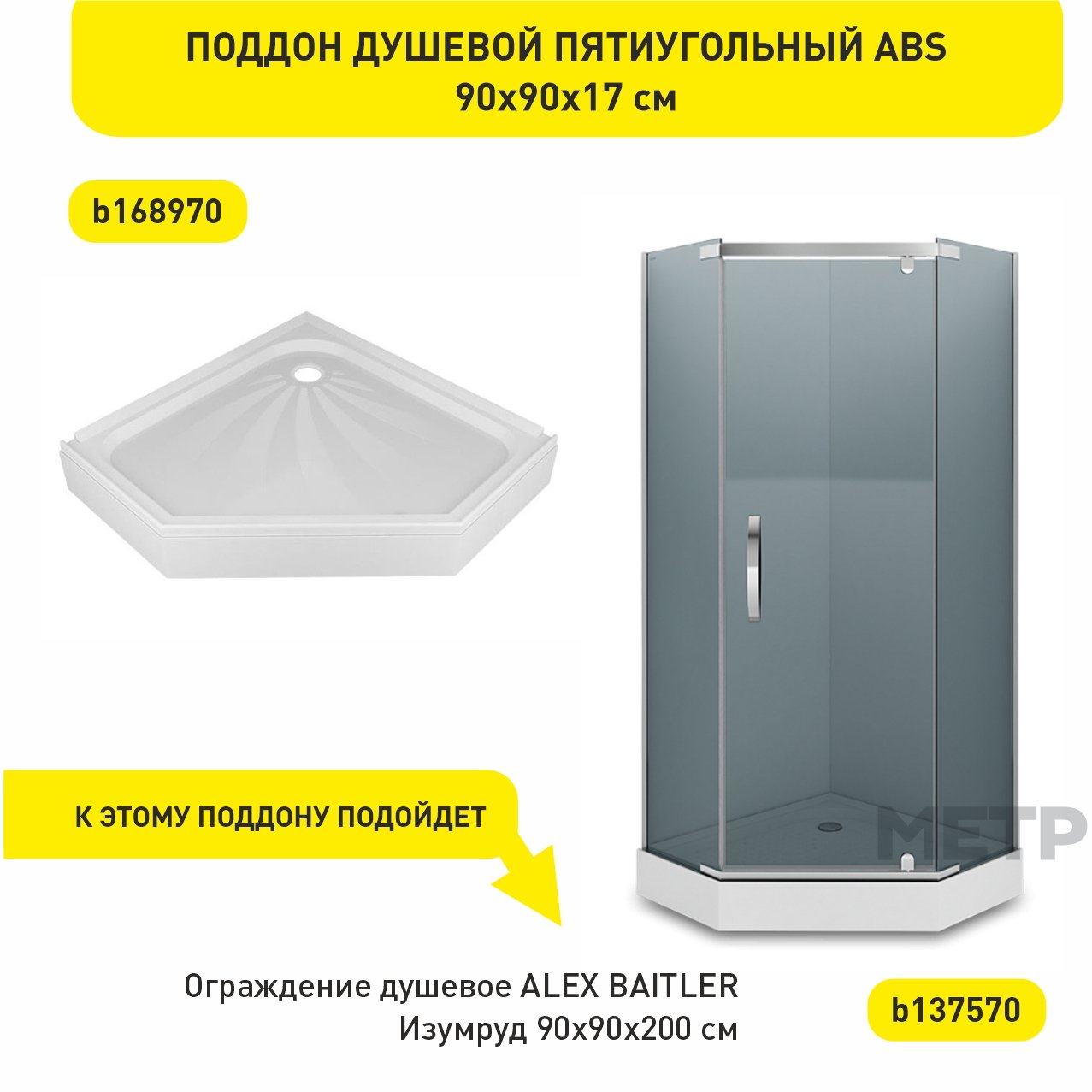 К этому поддону подойдут ограждение душевое ALEX BAITLER Изумруд 90х90х200 см артикул b073833 и ограждение душевое ALEX BAITLER Изумруд 90х90х200 см артикул b137570.
