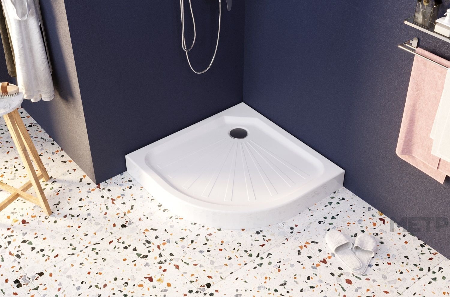 Акриловый полукруглый душевой поддон прекрасное решение для небольших ванных комнат. Закругление лицевой части поможет эффективно и стильно использовать пространство ванной. Небольшой уклон в сторону слива и закругленные грани поддона позволят эффективно стекать воде и предотвращать ее переливание через борт. Поддон выдерживает нагрузку до 300 кг.