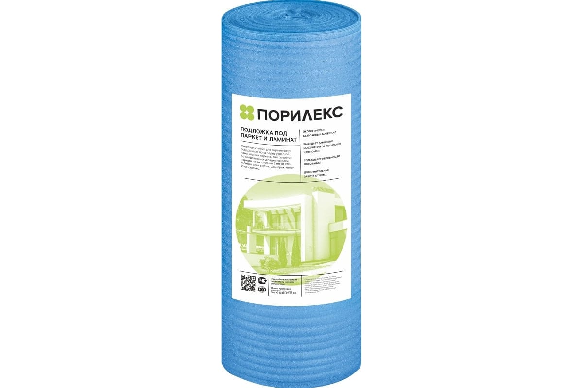 Подложка рулонная 2мм - является наиболее бюджетным вариантом. Рулонная подложка разворачивается на бетонной стяжке, либо на плите перекрытия перед укладкой чистового пола. Полы перед применением должны быть сухими и ровными. Обязательно необходимо использовать гидроизоляционную пленку для ограничения влаги. Отличается эластичностью, не подвержена гниению или заражению грибками, даже при контакте с сырыми поверхностями.