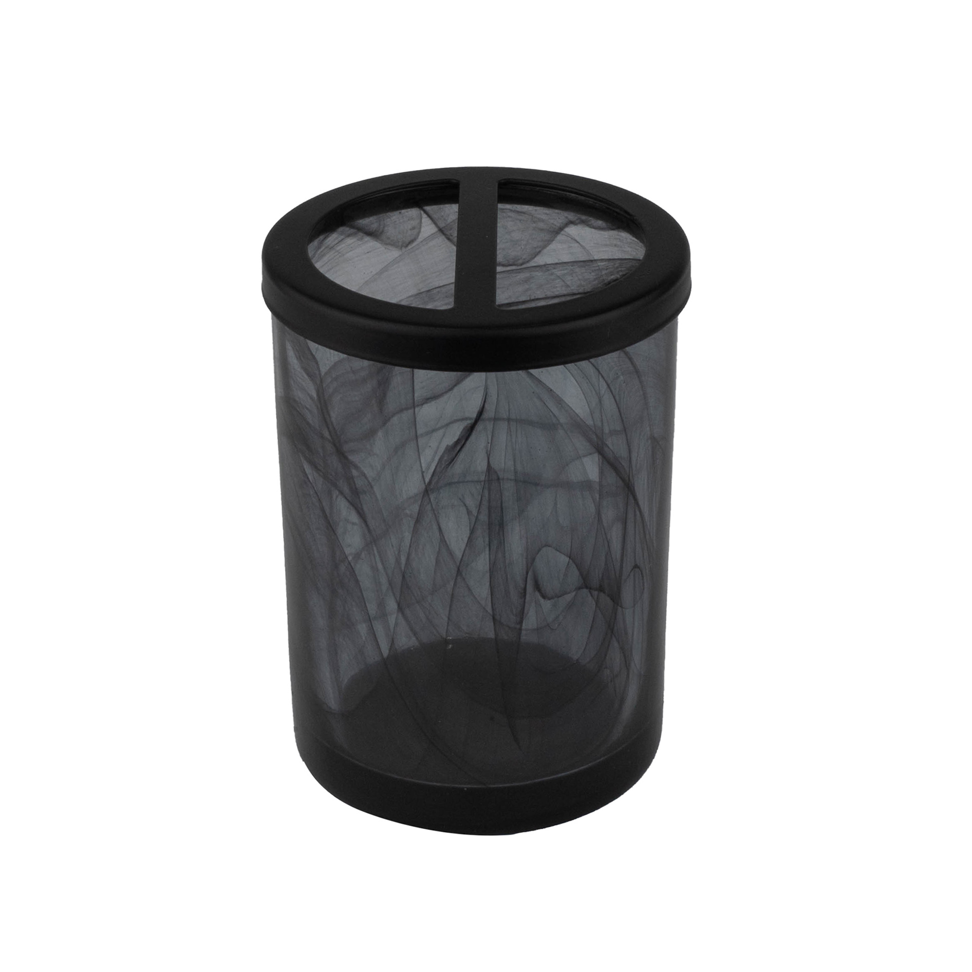 Подставка настольная для зубных щёток с предусмотренным конструкцией местом для тюбика зубной пасты, а так же других предметов гигиены (бритвенный станок, кисточки). Имеет цилиндрическую форму. Изготовлена из стекла. Влагоустойчива.