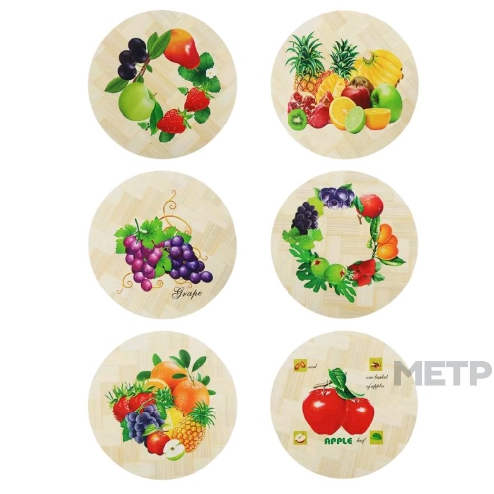 Подставка под горячее VETTA бамбук имеет 6 оригинальных дизайнов. Яркие изображения спелых красных яблок, винограда, клубники и экзотических фруктов поднимают настроение и способствуют повышению аппетита. Идеальные круглые формы хорошо подходят под классические тарелки и чайные блюдца.