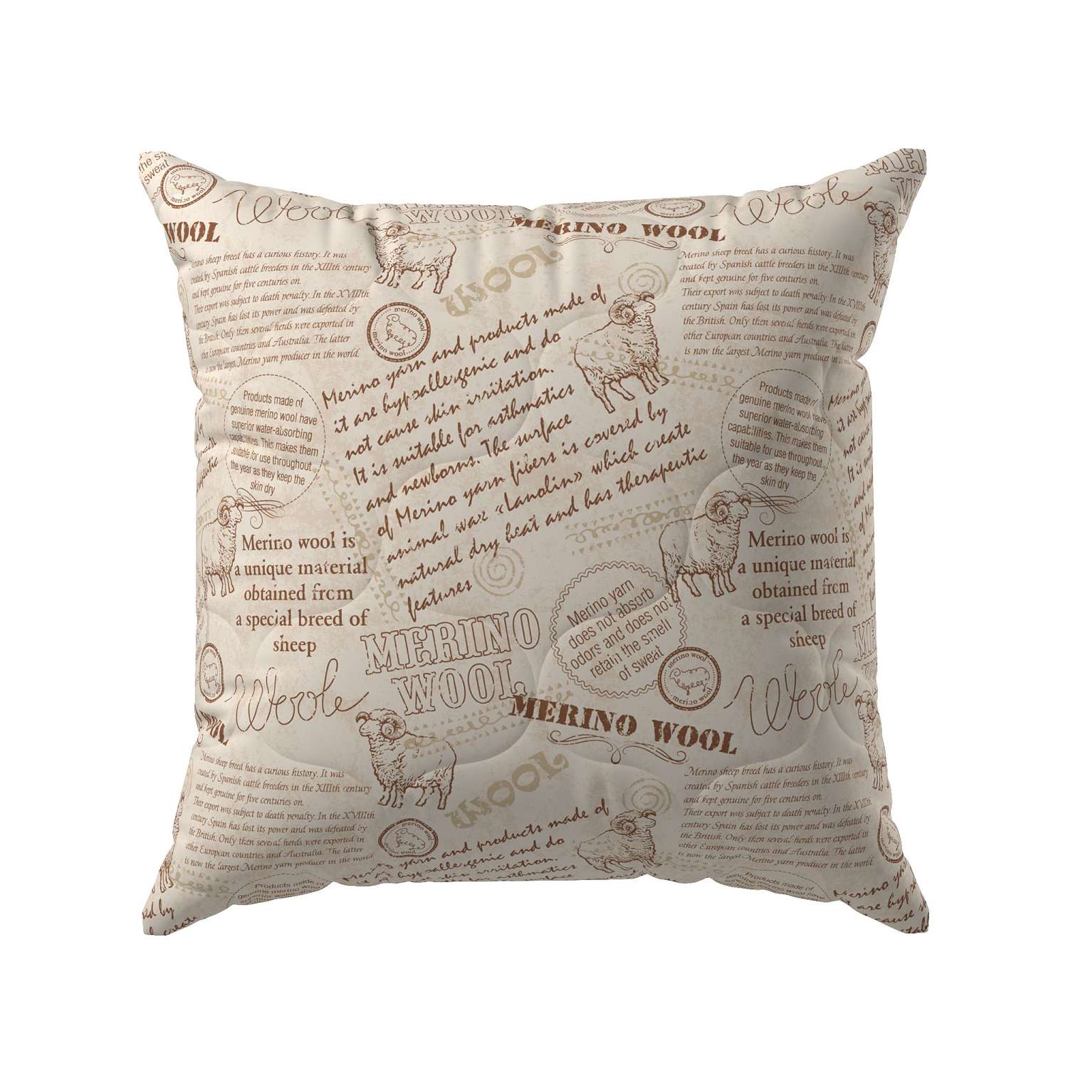 Подушка 70х70 см меринос отличается хорошей терморегуляцией, поддерживая здоровый сон в холодное и жаркое время года. Хорошо впитывает пот, не задерживая неприятный запах. Хлопковый чехол держит форму, не растягивается в процессе эксплуатации. Наполнитель сохраняет объем, не превращаясь в комки.