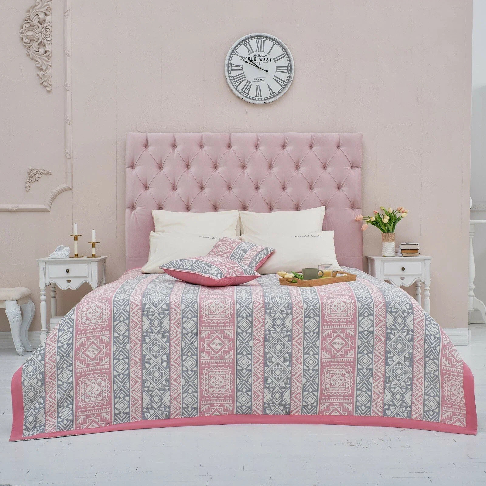 Покрывало 180х240 Инди хлопок Серо-розовый - это прекрасное дополние в Вашу спальню атмосферой уюта и комфорта. Плотная ткань предотвращает истирание и обеспечивает продолжительный срок службы