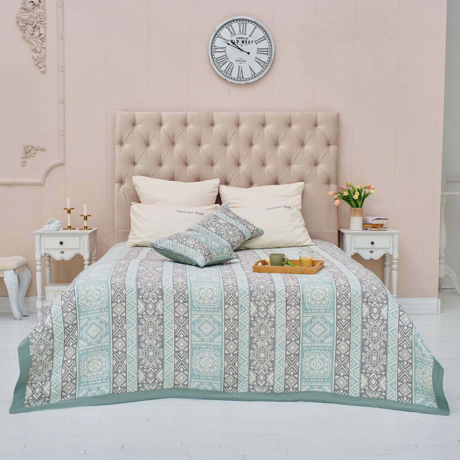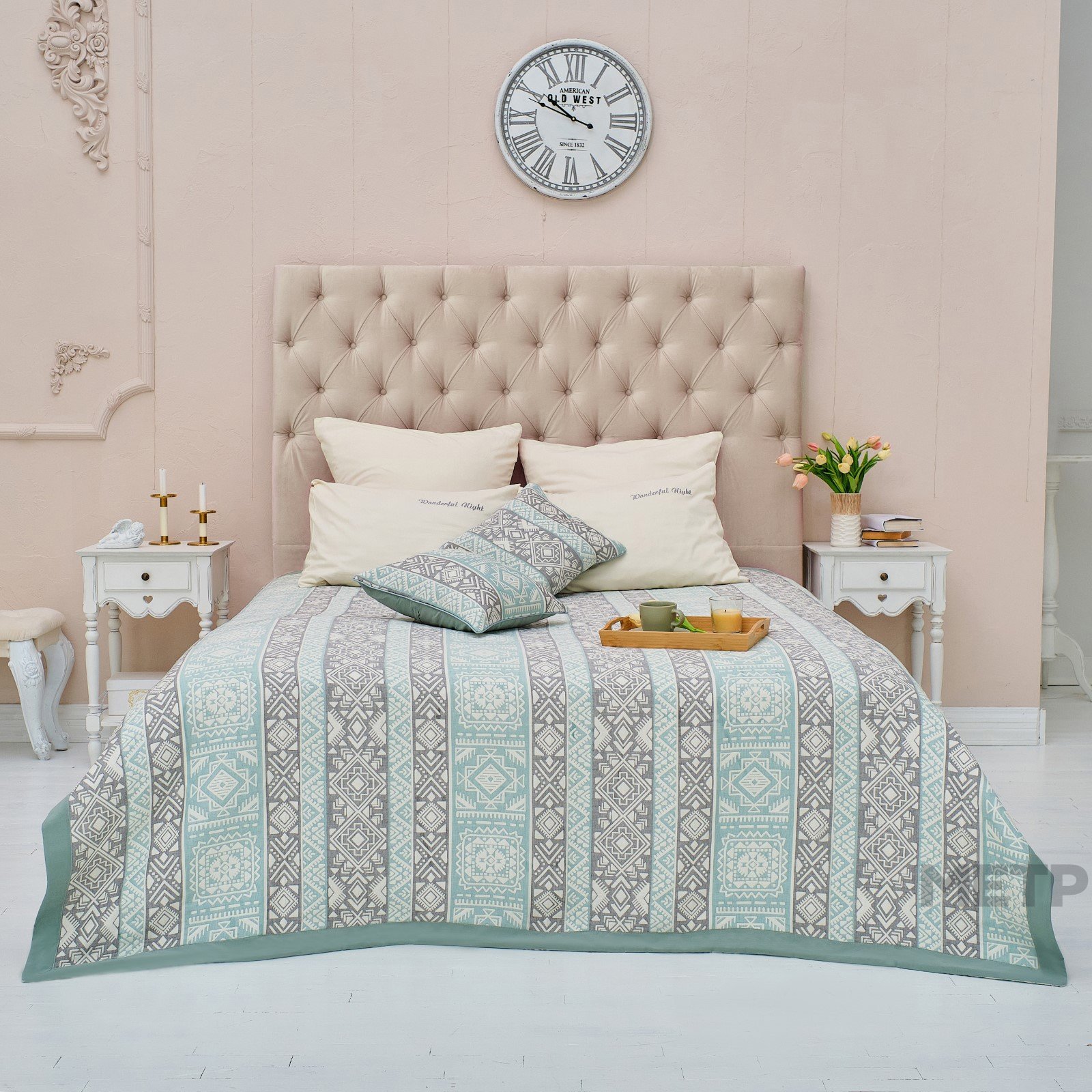 Покрывало 220х240 Инди хлопок Серо-зеленый - это прекрасное дополние в Вашу спальню атмосферой уюта и комфорта. Плотная ткань предотвращает истирание и обеспечивает продолжительный срок службы