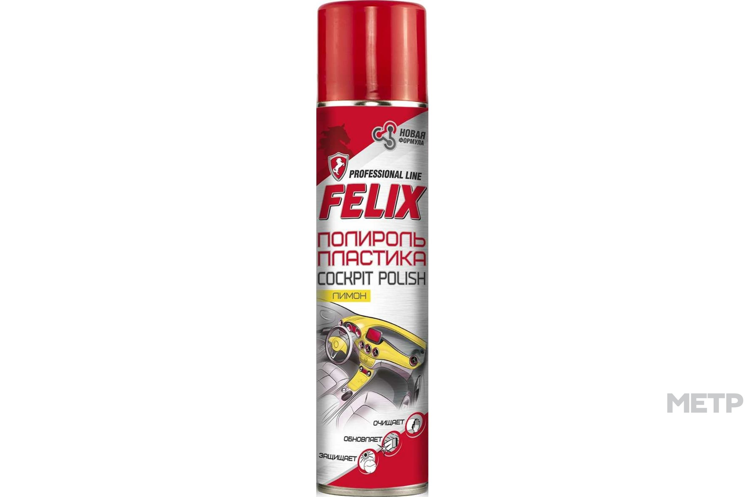Полироль для пластика Лимон (400 мл). Средство поможет защитить пластиковые элементы транспортного средства от преждевременного разрушения и потери внешней привлекательности. Наносимый сверхтонкий защитный слой остановит проникновение в поры сторонних частиц (влаги, грязи). Легкий аромат лимона взбодрит во время поездок.