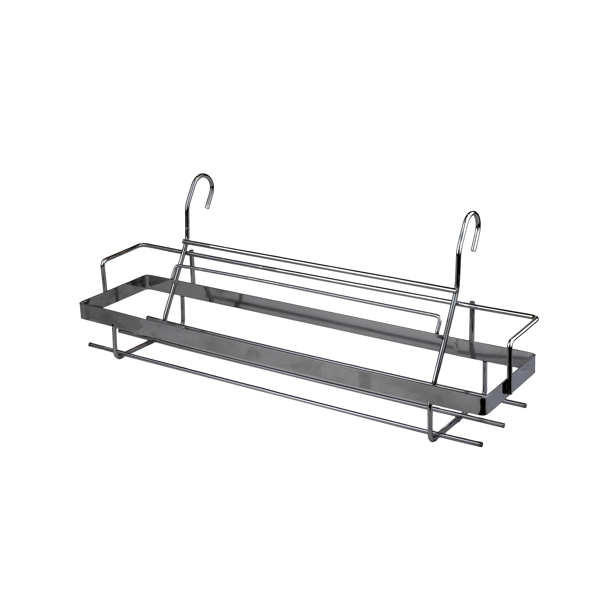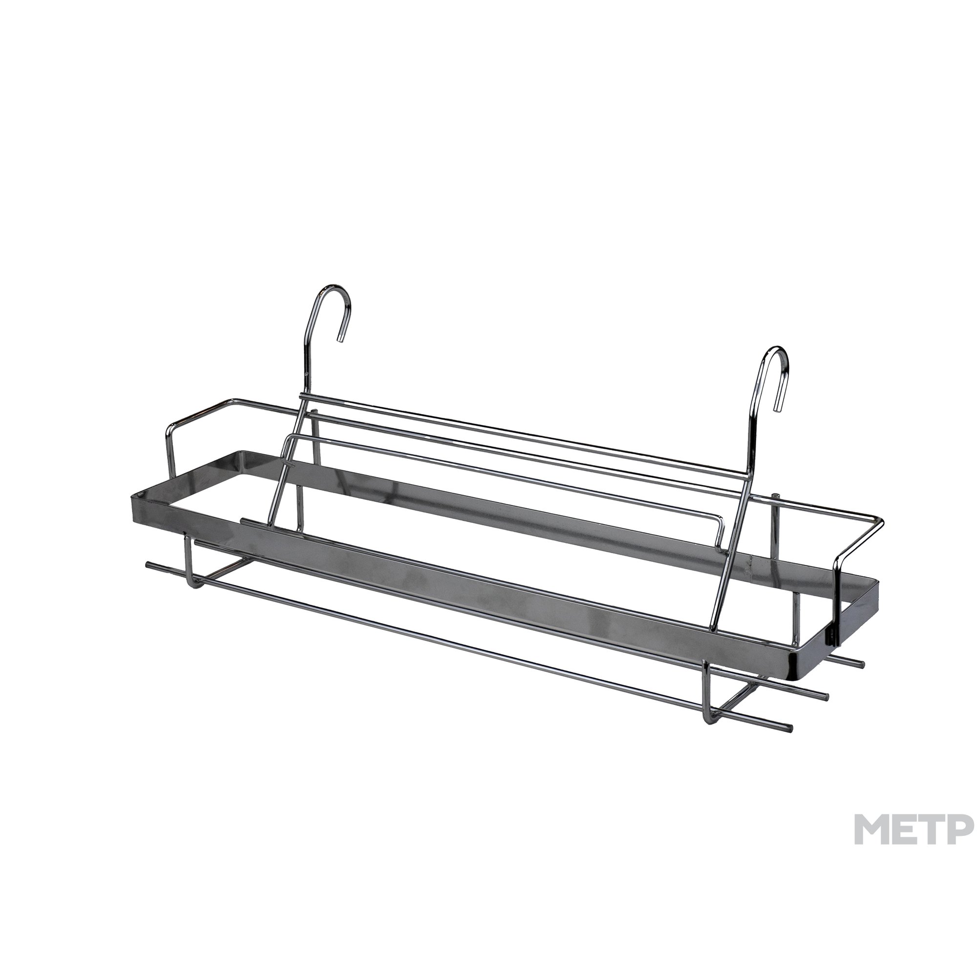 Навесная полка для специй на рейлинг 38х9х14 см AN52-128 предназначена для размещения и хранения специй. Благодаря хромированному покрытию не ржавеет.