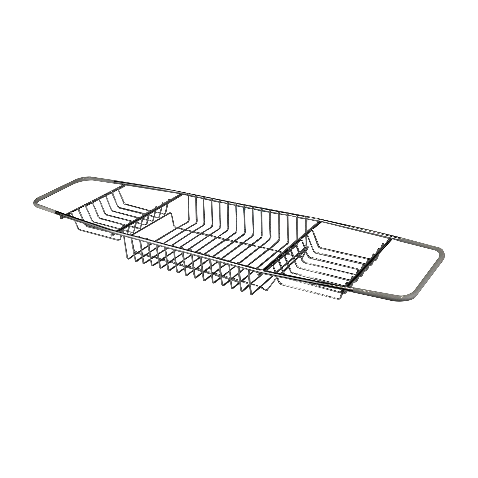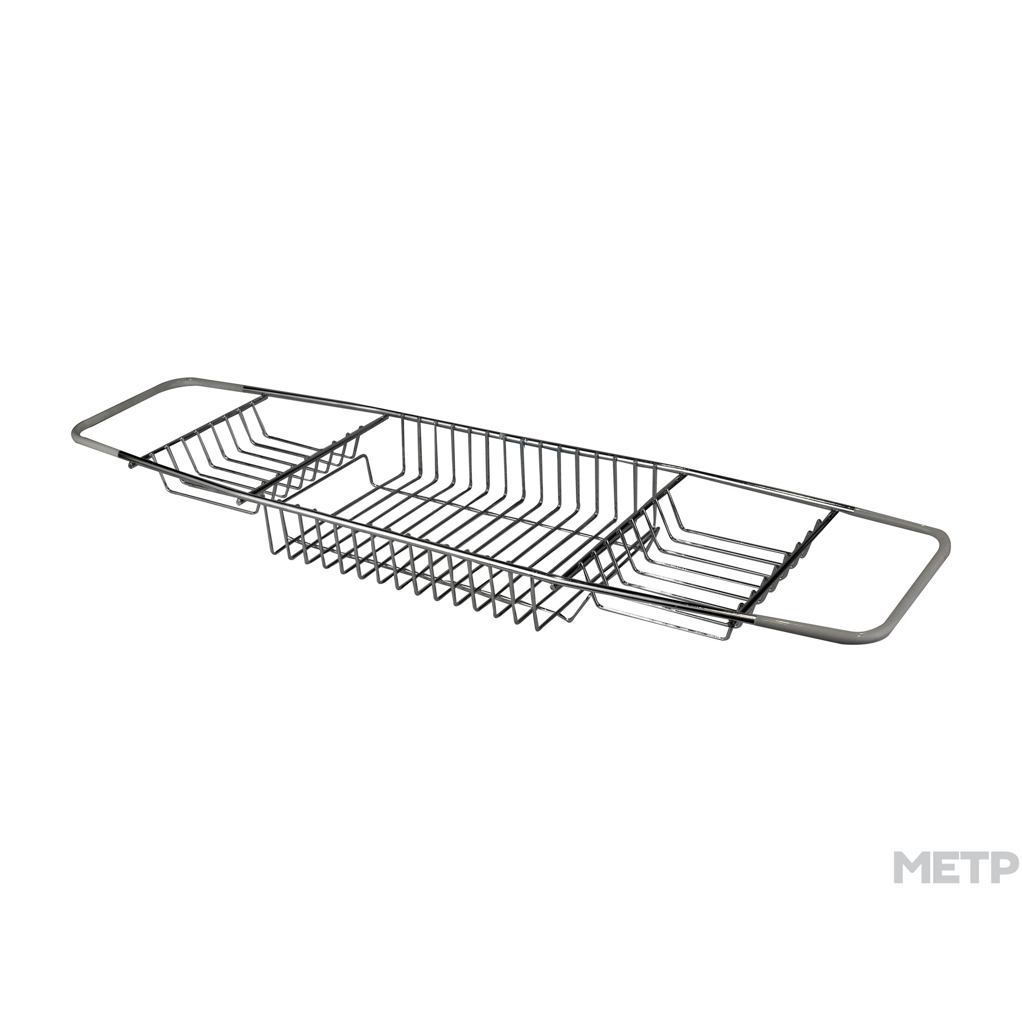Полка металлическая, на ванну. Крепится непосредственно на ванну. Имеет 3 отсека (под мыло, мочалку и другие предметы гигиены). Края полки покрыты мягким силиконом, что не позволяет ей скользить по ванне. Высокая устойчивость к коррозии. Толщина прутьев 0,58 см и 0,25 см.