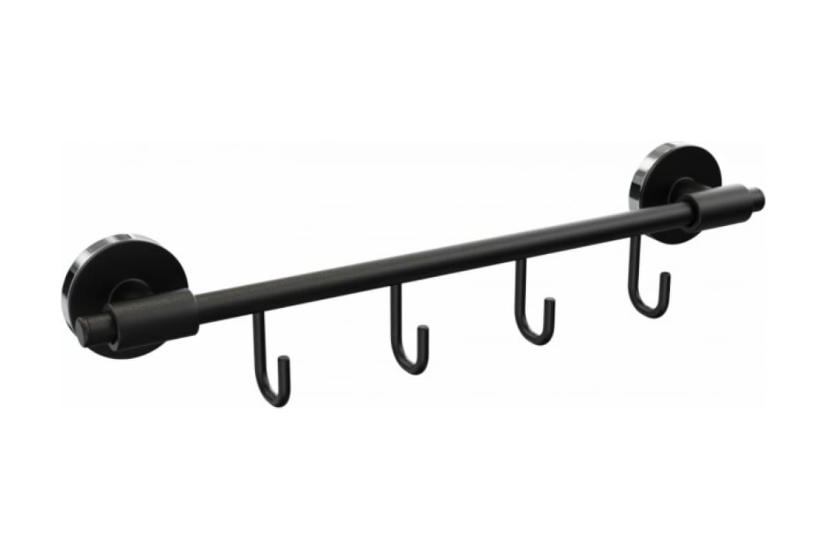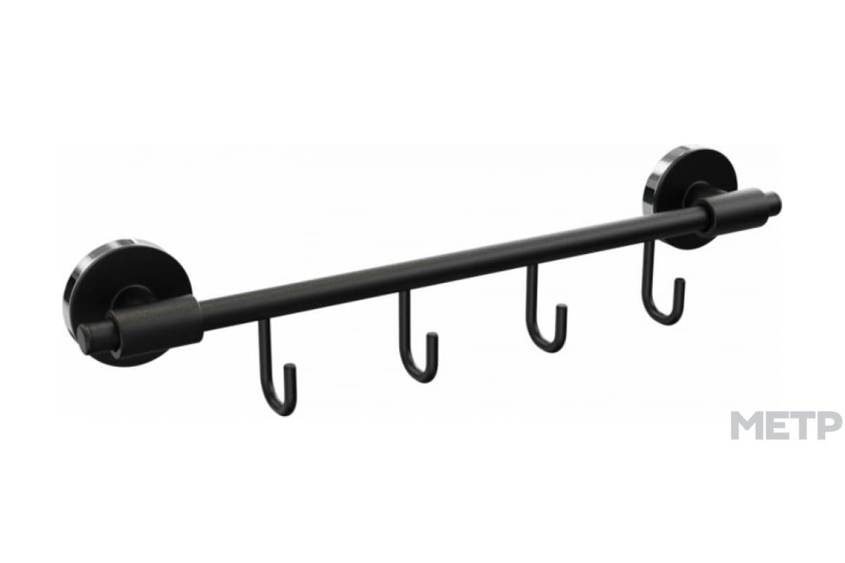 Крючки – один из оптимальных вариантов оформления функциональной зоны на стене ванной комнаты. Однако в некоторых интерьерах отдельные крючки смотрятся неуместно и нарушают гармонию. Держатель для полотенец "LORD" FORA с 4 крючками в черном цвете – лучшее решение для элегантного дизайна пространства.