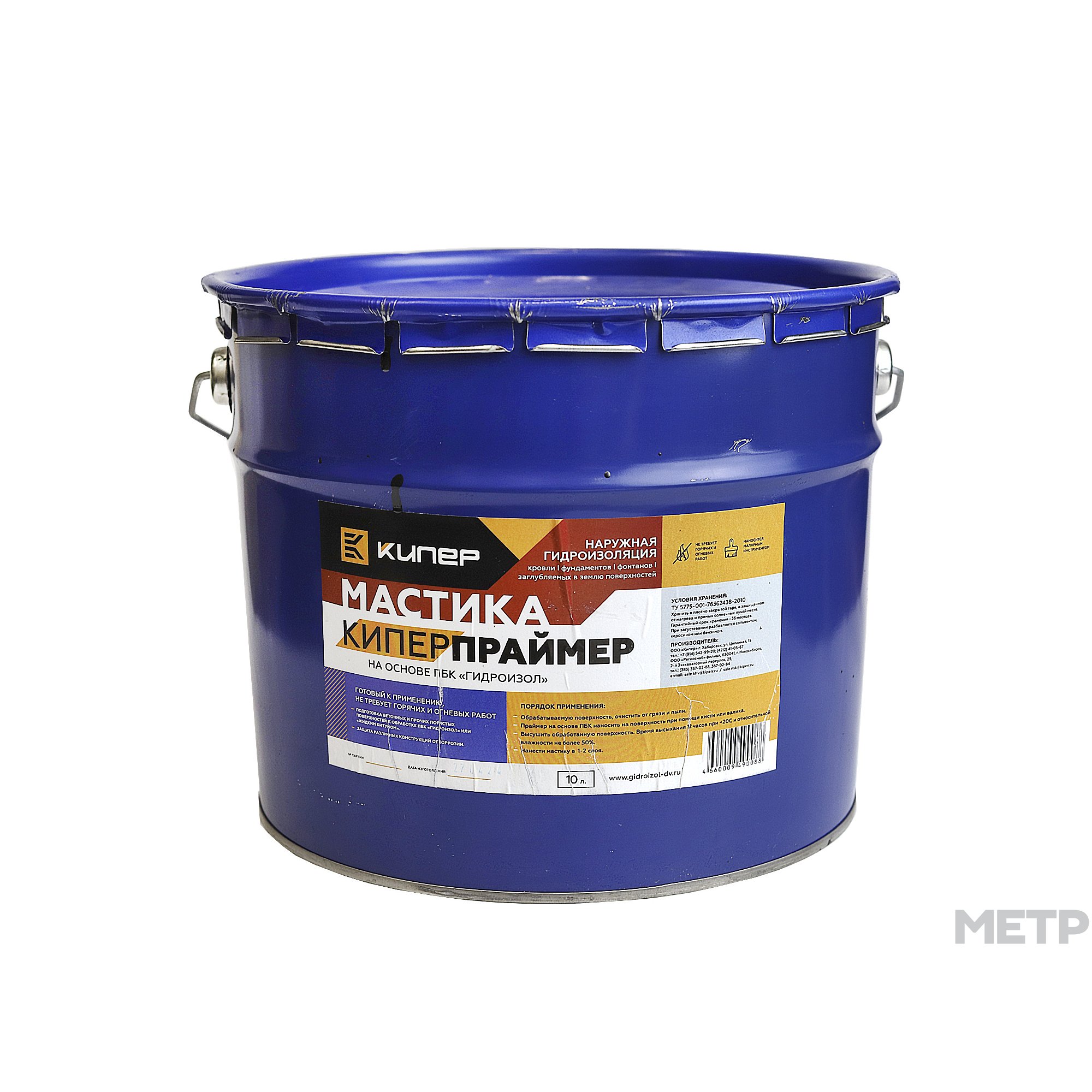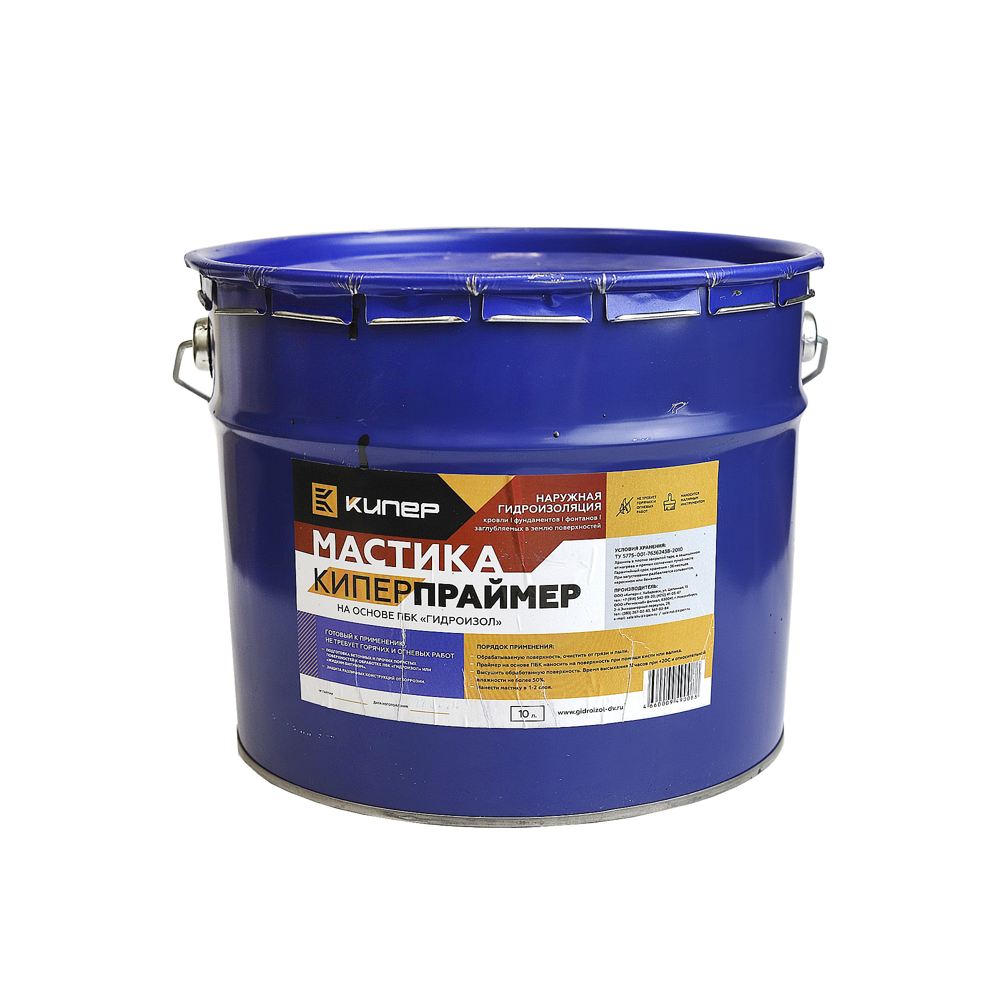 ПРАЙМЕР Кипер на основе ПБК Гидроизол 10 л, - однородная черная масса с выраженной вязкостью. В его состав входят полимерные соединения, растворители и битум БН 70/30. Основное преимущество в использовании полимерно-битумного праймера - ему не требуется проводить предварительный нагрев с помощью открытого огня или иным способом. Средство сразу укладывается на рабочую площадь с помощью малярных принадлежностей. Основной сферой его практического использования является грунтовка разных поверхностей, на которые планируется нанесение гидроизоляции на битумной основе. Особенно актуально использование этого средства во время укладки гидроизоляции межэтажных перекрытий, кирпичных и шлакоблочных конструкций. Еще одна область применения - укладка наплавляемой кровли, где для улучшения сцепки рулонных рубероидов наносят слой данного праймера.