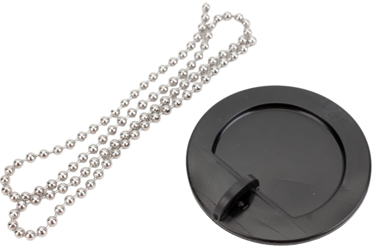 Пробка для ванны (раковины) чёрная c цепочкой из нержавеющей стали.