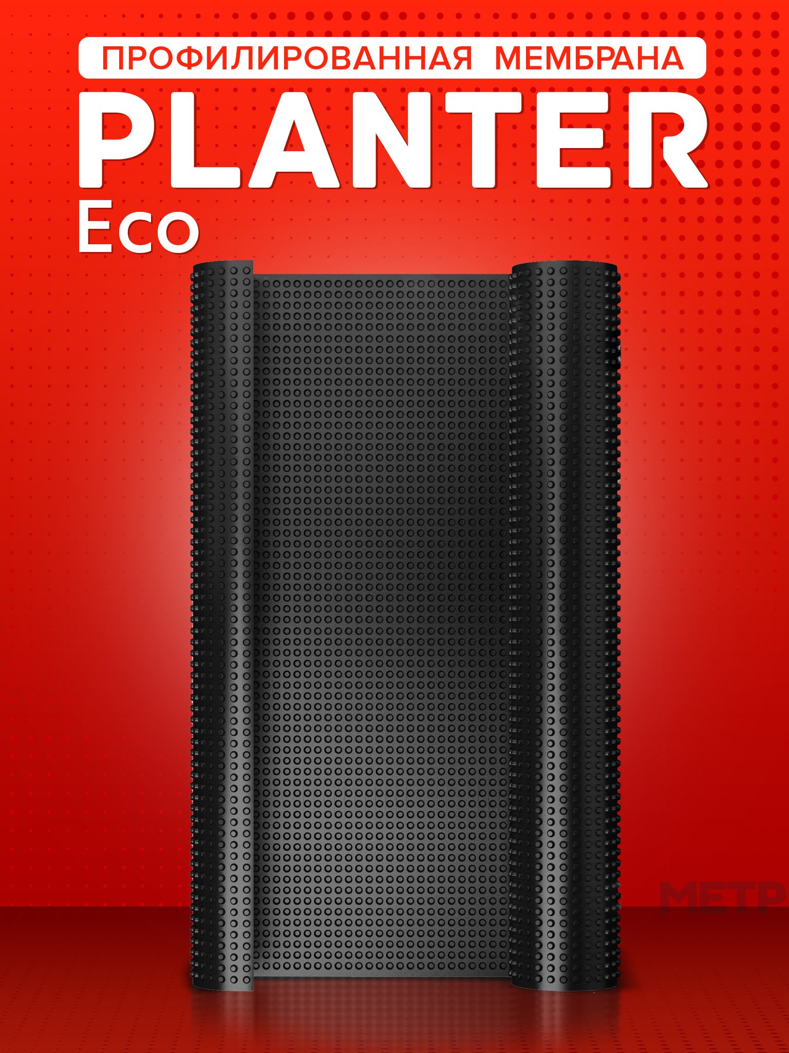 PLANTER eco – это полимерные профилированные мембраны, применяемые в промышленном, гражданском, транспортном и гидротехническом строительстве в качестве защитного материала. Мембраны изготавливают путём формирования в единое полотно сырьевой массы из полиэтилена высокой плотности (HDPE). Вся площадь лицевой поверхности мембран выполнена в виде выступов высотой 8,5 мм.