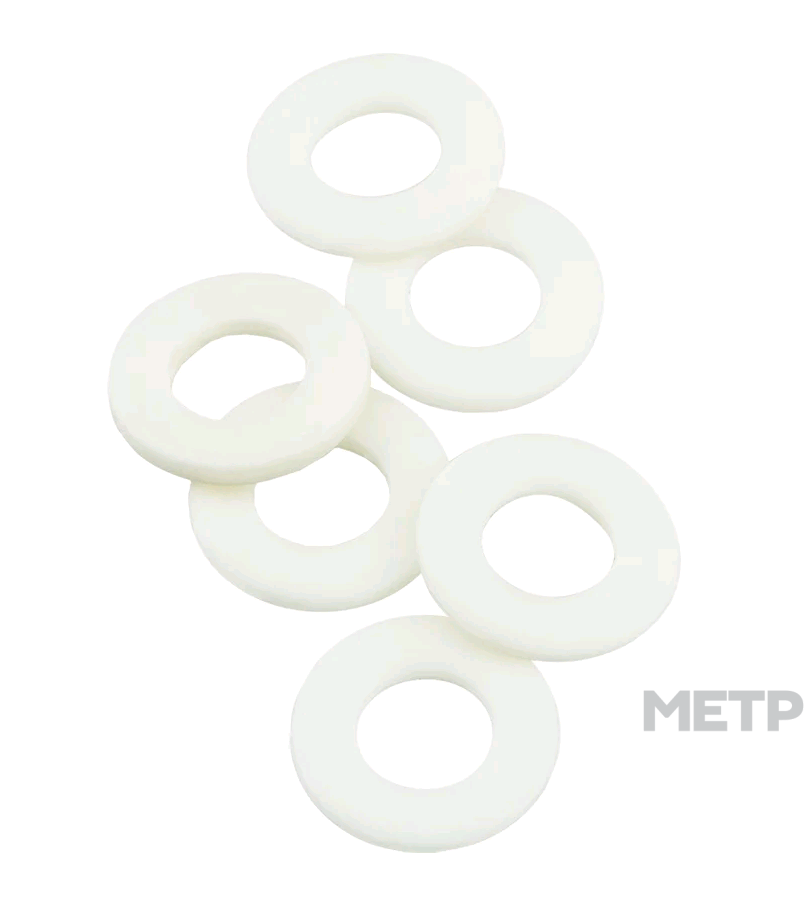 Изготовлены из белой резины, благодаря чему имеют ряд преимуществ: обладают несущественным поглощением жидкости, а также повышенной устойчивостью к износу, непроводимостью электрической энергии и стойкостью к истиранию. Одним из главных преимуществ прокладок из белой резины является повышенное содержание каучука и доступная цена, особенно при закупке резиновых прокладок оптом. Выдерживают давление до 10 бар. Рабочая температура от -45 до +80.
