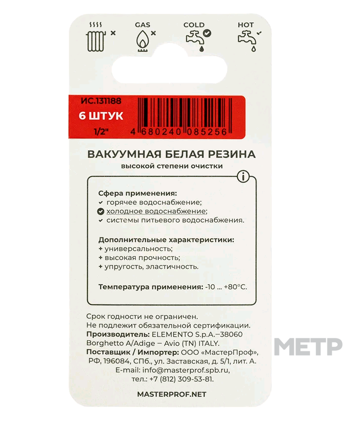 Прокладка ИС.131188 предназначена для герметизации резьбовых соединений в системах горячего и холодного водоснабжения.