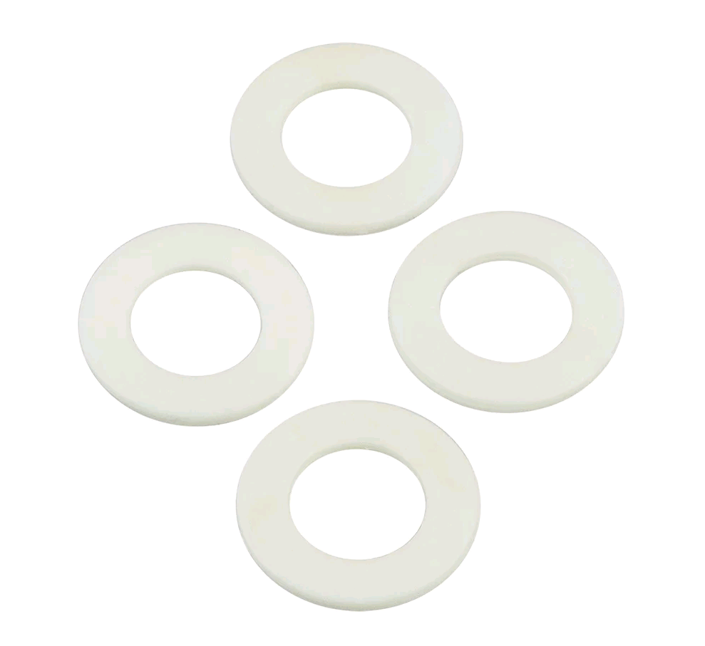 Изготовлены из резины, благодаря чему имеют ряд преимуществ: обладают несущественным поглощением жидкости, а также повышенной устойчивостью к износу, непроводимостью электрической энергии и стойкостью к истиранию. Одним из главных преимуществ прокладок из белой резины является повышенное содержание каучука и доступная цена, особенно при закупке резиновых прокладок оптом. Выдерживают давление до 10 бар. Рабочая температура от -45 до +80.