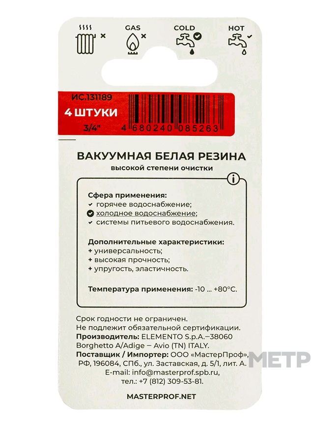 Прокладка ИС.131189 предназначена для герметизации резьбовых соединений в системах горячего и холодного водоснабжения.