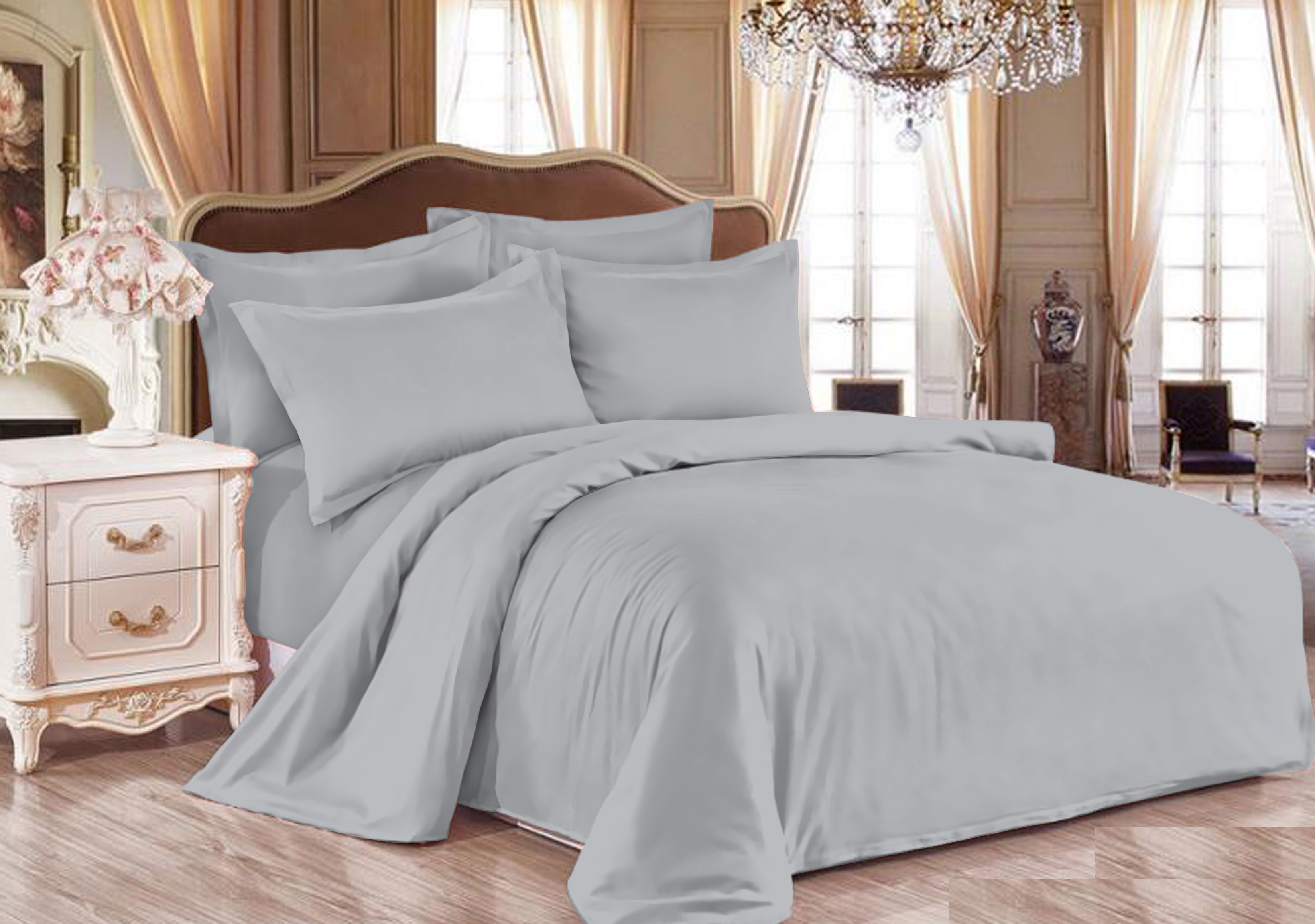 Простыня "Графит". Выполнена из натуральной хлопковой ткани Сатин, плотностью 120гр./м2. Состав материала 100% хлопок. Размер простыни 220*180 см. Цвет серый