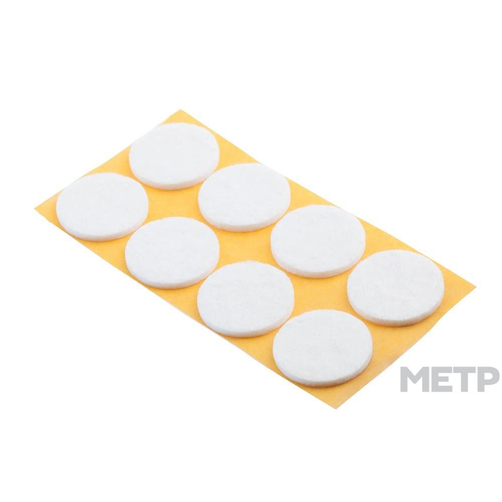 Пункт фетровый самоклеющийся 26 мм белый 8 шт. применяются для защиты напольного покрытия от повреждений при перемещении шкафов, комодов, тумб и другой мебели, а также для корректировки уровня установки и монтажа мебели. Изготовлены из прочного плотного фетра, сохраняющего изначальную форму даже при высоких нагрузках. Пункты клеятся на предварительно очищенную и обезжиренную поверхность.