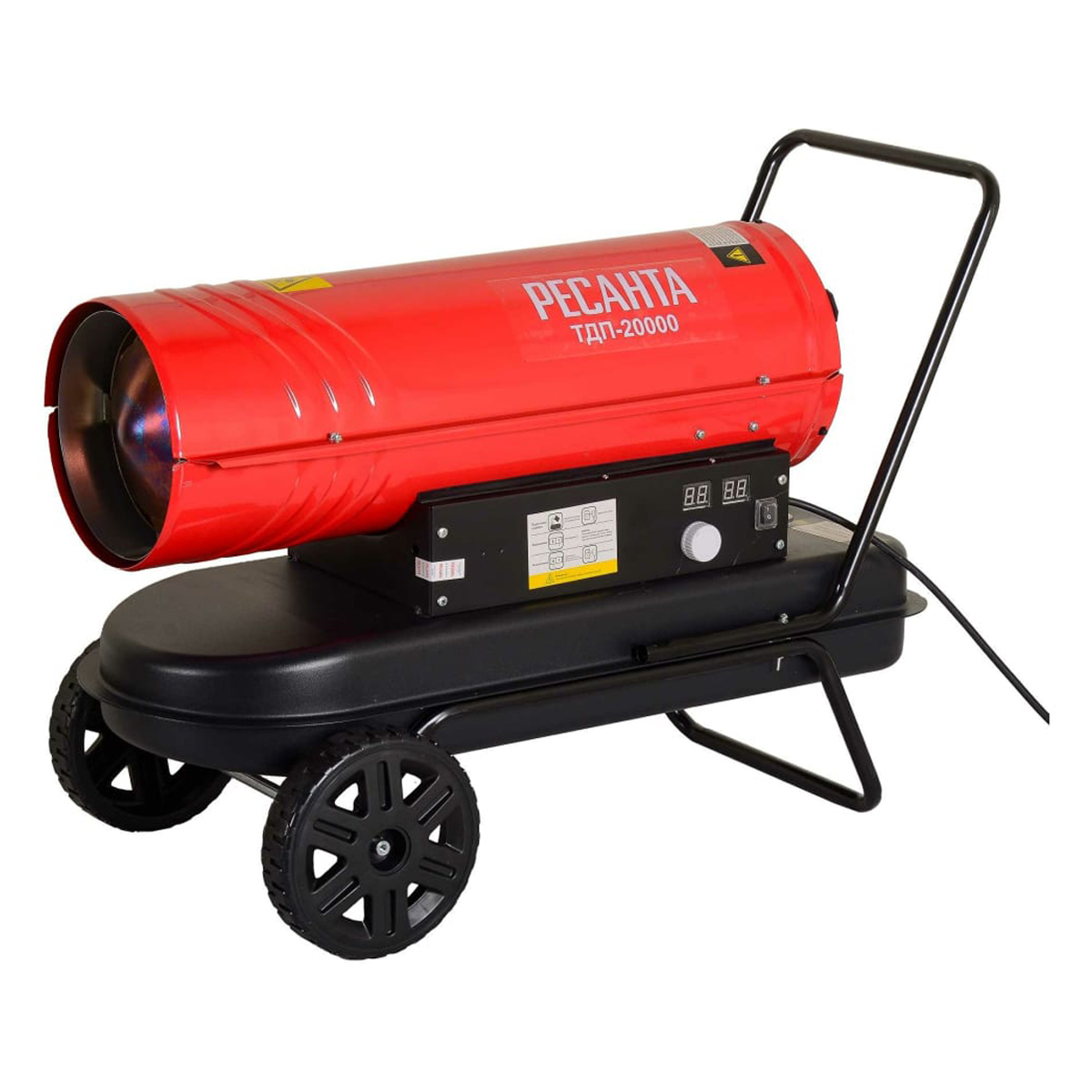 Дизельная тепловая пушка прямого нагрева Ресанта ТДП-20000 мощностью 20 кВт обеспечивает быструю и эффективную вентиляцию и обогрев нежилых помещений. Вместительный топливный бак объемом 12 л в сочетании с экономичным расходом топлива 1,58 кг/ч гарантируют бесперебойную работу до 10 часов.