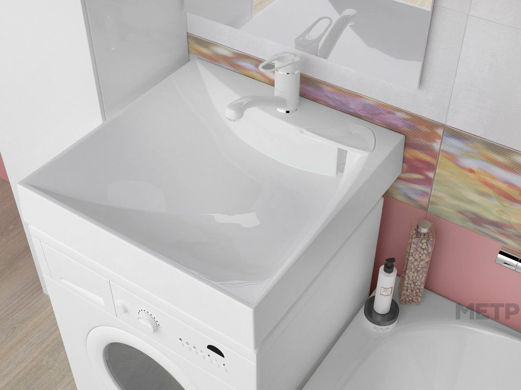 Раковина Marko Твистер 600мм создана специально для тех, кто ценит практичность и рациональное использование пространства. Её уникальная конструкция позволяет установить раковину непосредственно над стиральной машиной, что делает её незаменимой для совмещенных санузлов, малогабаритных квартир или планировок студий. У раковины есть декоративная накладка-мыльница. Подходит для стиральных машин глубиной до 485 мм.