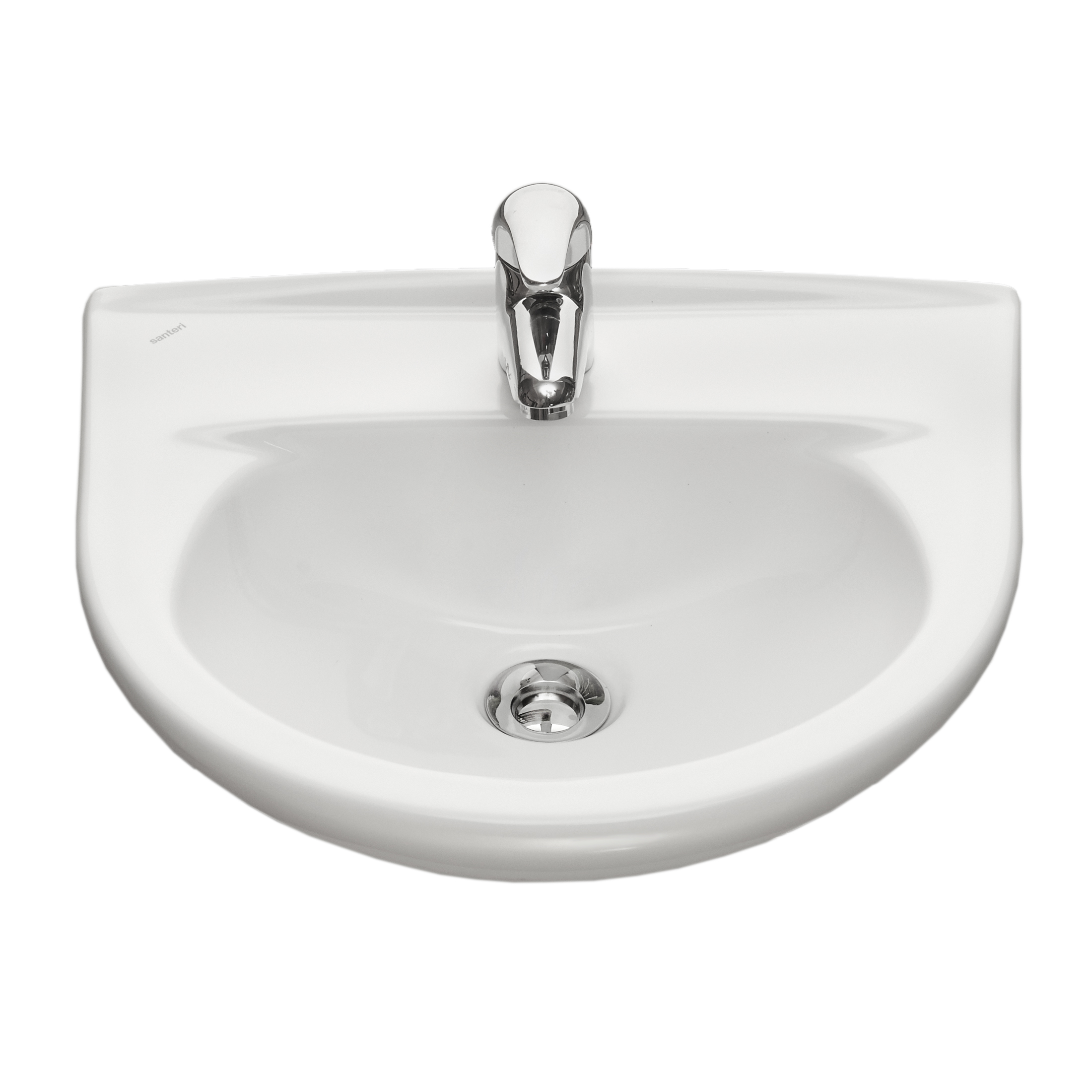 Раковина Santeri Родничок круглая 445 мм (фарфоровая), для страховки от перелива предусмотрено специальное отверстие. Цвет модели белый, смеситель подключается посередине. Такая раковина монтируется на пьедестале, хорошо впишется в интерьер окружающей обстановки сочетаясь с другими предметами.