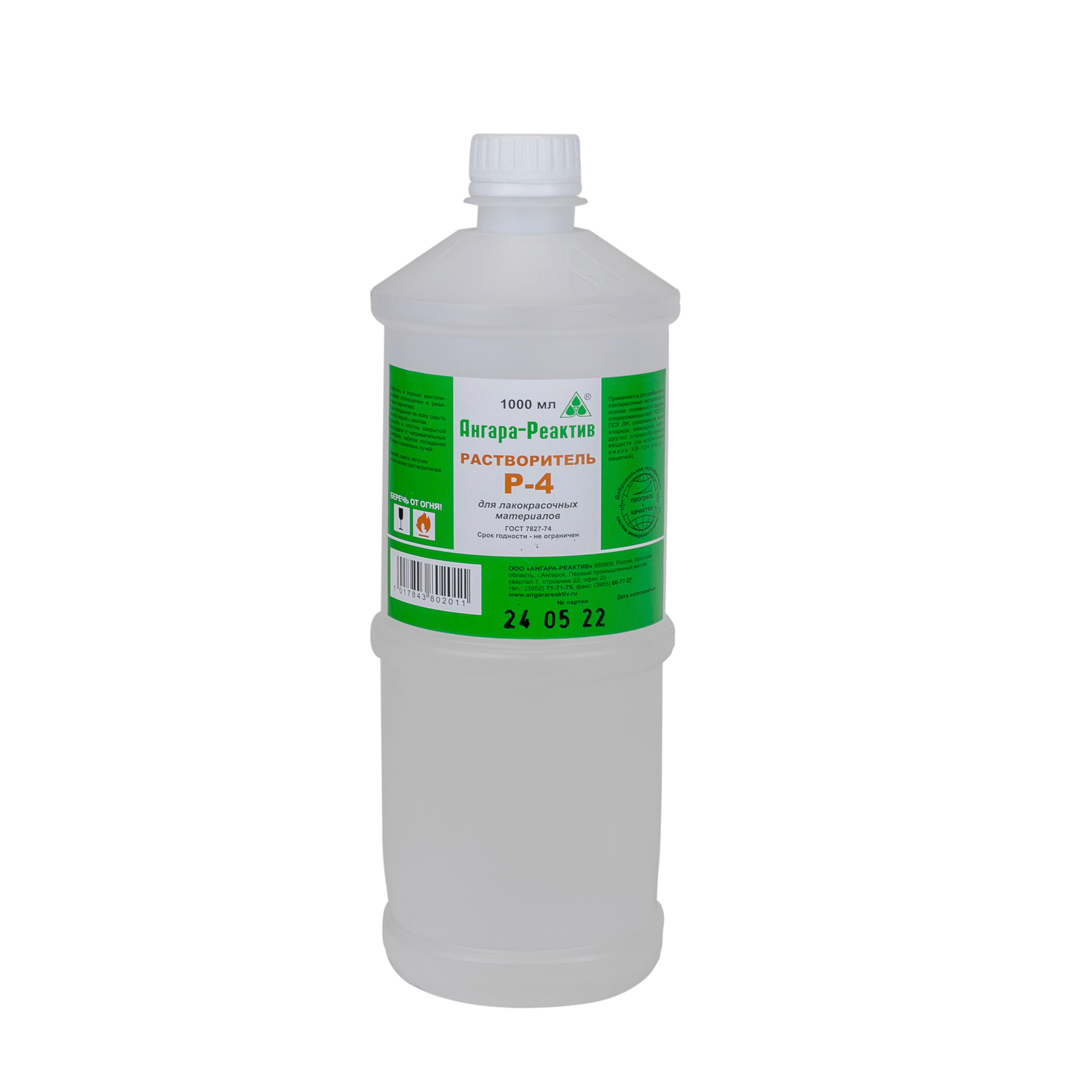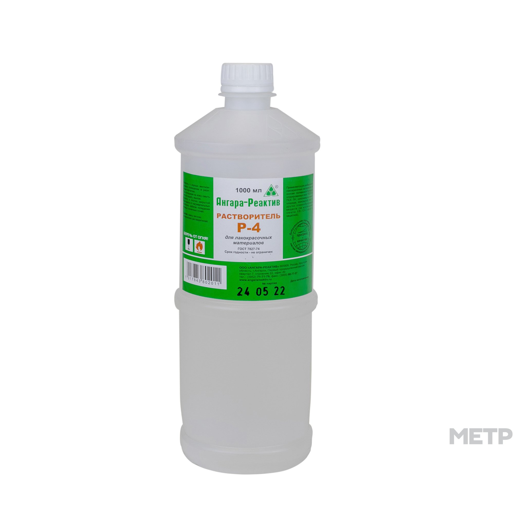 Растворитель Р-4 Ангара-Реактив (1 л) используется для разбавления лакокрасочных материалов на основе поливинилхлоридных хлорированных смол ПСХ-ЛС, сополимеров винилхлорида и других пленкообразователей
