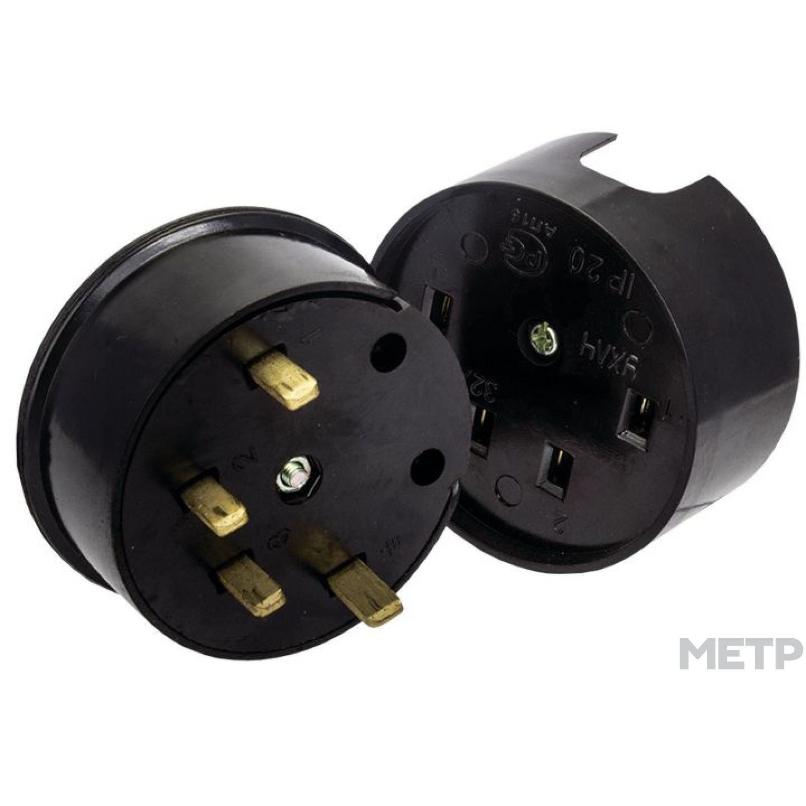 Разъем для электроплит накладной Россия 32А 380В 3P+PE черный IP23 предназначен для присоединения трехфазных электротехнических устройств с заземлением на номинальный ток 32 А к трехфазной сети переменного тока напряжением 380 В с частотой 50 Гц.