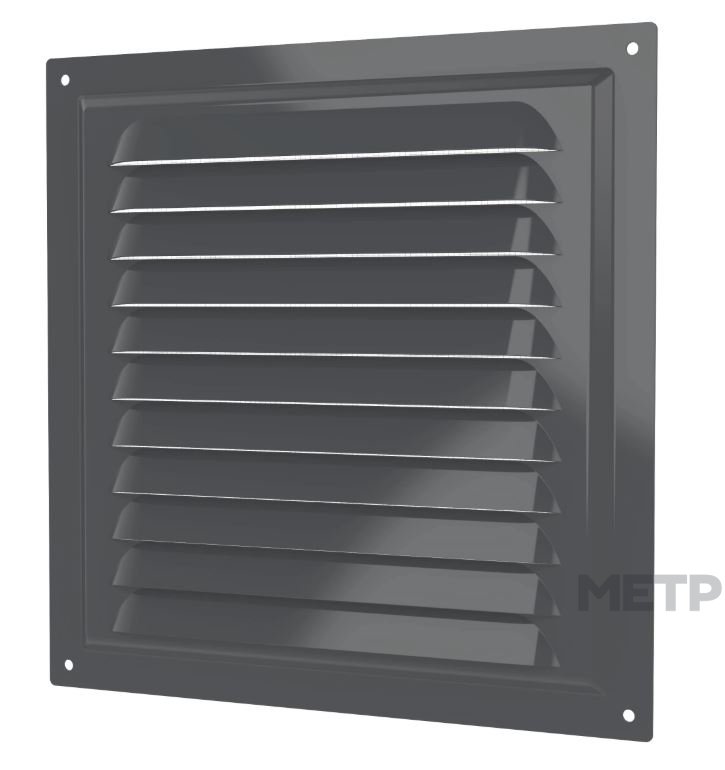 Решетка МЭ изготавливается из оцинкованной стали, которая покрывается полимерной эмалью. Имеет наклонные жалюзи.