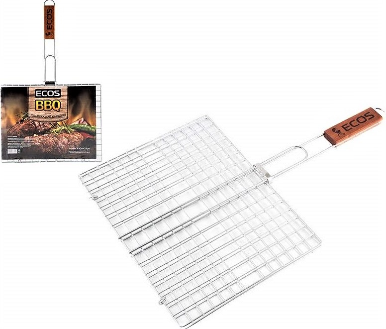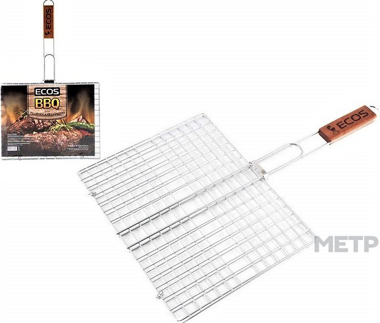 Решетка-гриль Ecos 22012 31х24х1,5 см – удобный прототип изделия, где имеется возможность фиксации кусочков мяса в процессе жарки. После кулинарной обработки на сочных стейках формируется румяная корочка с характерными полосками. Конструкция выполнена из жаропрочной стали, которая характеризуется износостойкостью к воздействию определенных факторов.
