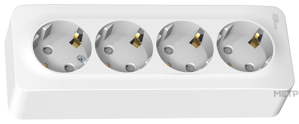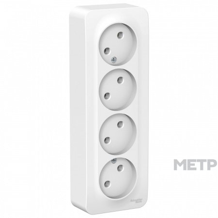 Розетка силовая четырехместная накладная Schneider Electric Blanca без заземления, цвет белый, с изолирующей пластиной предназначена для сетей до 250В, на ток до 16А. Четырехместная розетка позволяет подключить четыре устройства в одном месте. Заземление обеспечивает дополнительную безопасность при косвенном прикосновении. Производство- Россия