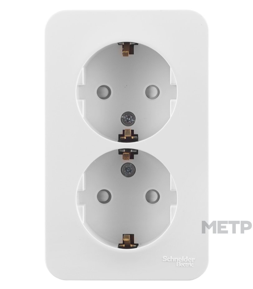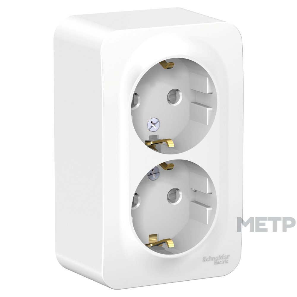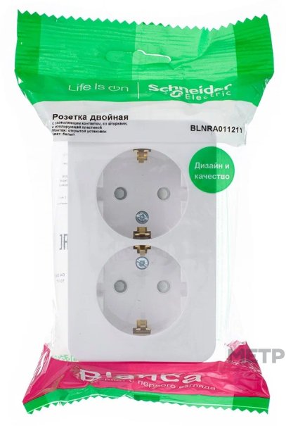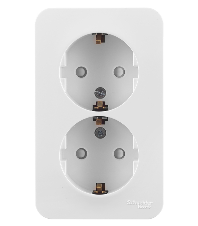 Розетка силовая двойная накладная Blanca с заземлением и шторками, цвет бел