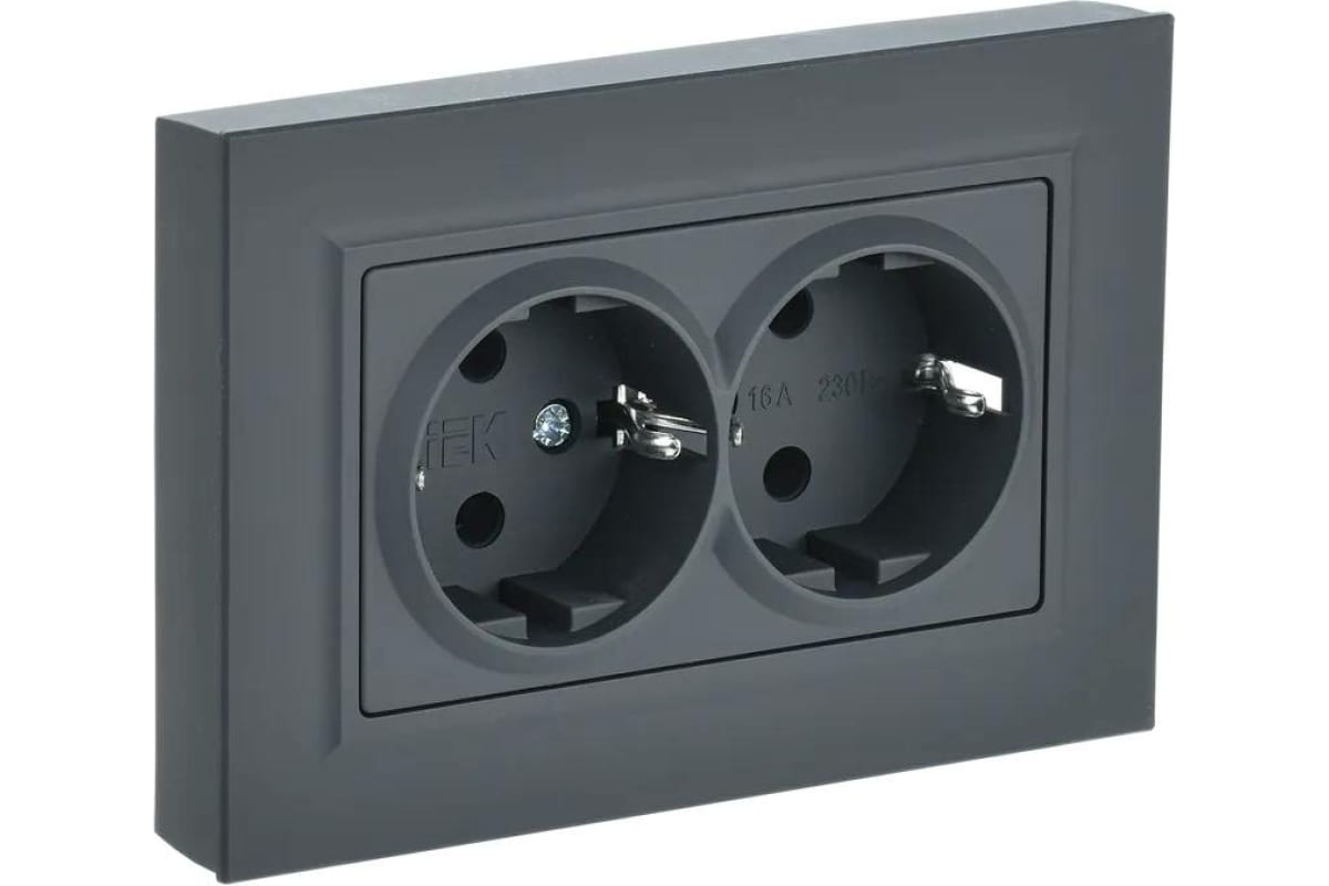 Розетка силовая двойная встраиваемая IEK Brite с заземлением графит - это гармоничный дизайн и европейский подход, надежность в эксплуатации и привлекательная цена. В линейке "BRITE" использованы материалы премиум-класса. Цветовая палитра и широкий ассортимент позволяют решить все задачи при строительстве и ремонте жилой и коммерческой недвижимости, выполнить современные интерьеры в едином стиле.