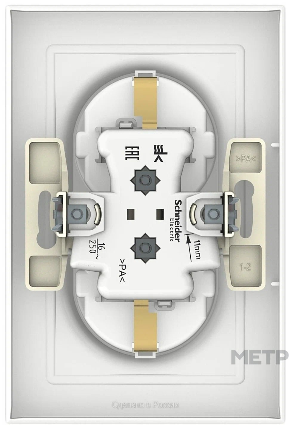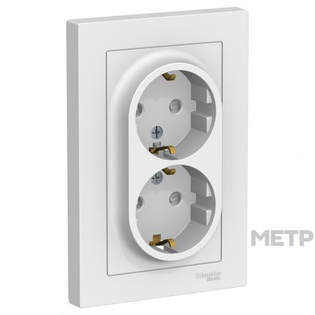 Розетка силовая двойная с заземлением и защитными шторками Atlas Design, цвет белый подходит для сетей 250 В, на ток 16 А. Заземляющий контакт обеспечивает дополнительную защиту от удара электрическим током. Лицевые детали из качественного ABS-пластика, устойчивого к царапинам и УФ-излучению. Усиленные прямые монтажные лапки для лучшей фиксации механизма в монтажной коробке. Контактная группа из латуни с высоким содержанием меди. Изделие поставляется в сборе в рамкой, монтируется в одноместную установочную коробку.