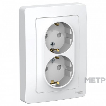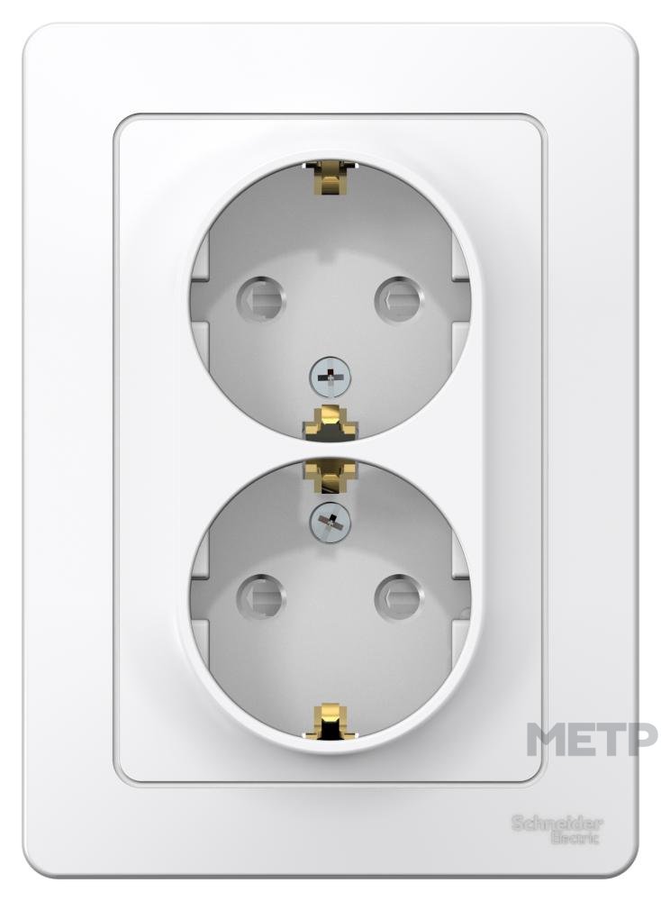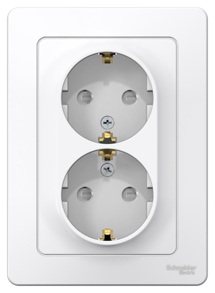 Розетка силовая двойная встраиваемая Blanca с заземлением и шторками, цвет белый, предназначена для сетей до 250В, на ток до 16А. Двухместная розетка позволяет подключить два устройства в одном месте. Шторки и заземление обеспечивают дополнительную безопасность при косвенном прикосновении. Корпус изделия выполнен из ABS-пластика. Производство - Россия.