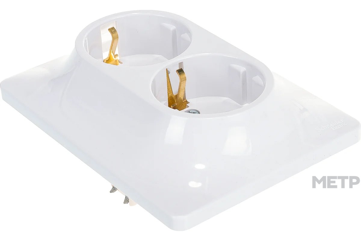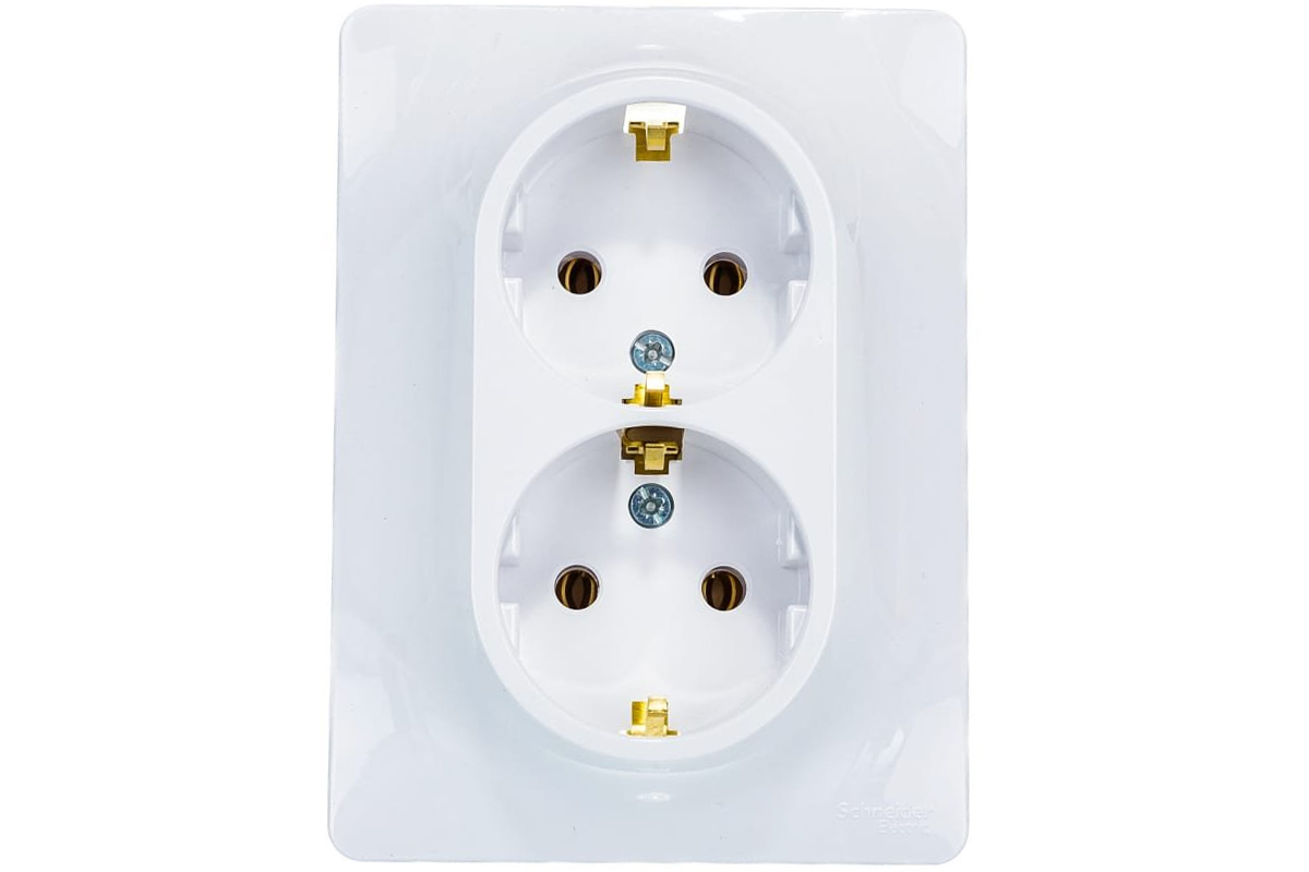 Розетка силовая двойная встраиваемая Schneider Electric Glossa с заземлением, цвет белый подходит для сетей 250 В, на ток 16 А. Выполнен из материала PС+ASA, стойкого к УФ-излучению и появлению царапин. Эргономичные клеммы розеток расположены в один ряд. Двойная розетка позволяет подключить два устройства в одном месте. Прочный металлический суппорт