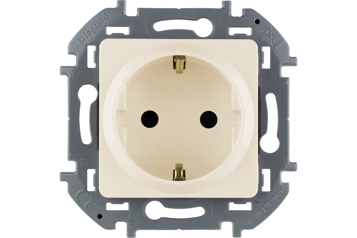 Розетка силовая встраиваемая Legrand Inspiria с заземлением и шторками, цвет слоновая кость применяется для электропитания в зданиях с проводкой с заземлением (с защитным проводником). Защищает детей и других пользователей от удара электрическим током. Шторки осуществляют защитную функцию путём ограничения доступа к токоведущим контактам. Доступ открывается только при подключении вилки. Лицевая панель крепится на защелках. Изготовлена из прочного глянцевого поликарбоната, стойкого к механическим воздействиям, выгоранию и загрязнениям. Защитные шторки интегрированы в механизм, обеспечивают высокий уровень электробезопасности и не затрудняют подключение и извлечение вилки.