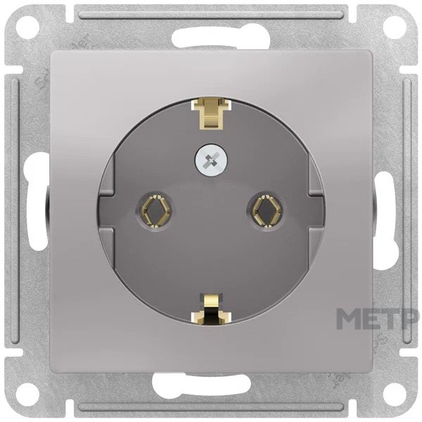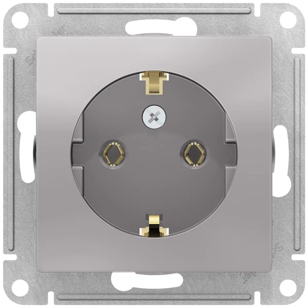 Розетка силовая с заземлением Atlas Design, цвет алюминий подходит для сетей 250 В, на ток 16 А. Заземляющий контакт обеспечивает дополнительную защиту от удара электрическим током. Лицевые детали из качественного ABS-пластика, устойчивого к царапинам и УФ-излучению. Усиленные прямые монтажные лапки для лучшей фиксации механизма в монтажной коробке. Контактная группа из латуни с высоким содержанием меди.