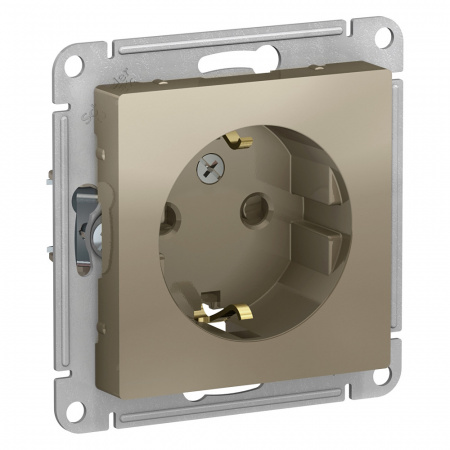 Розетка силовая с заземлением и защитными шторками Atlas Design, цвет шампань подходит для сетей 250 В, на ток 16 А. Заземляющий контакт обеспечивает дополнительную защиту от удара электрическим током. Лицевые детали из качественного ABS-пластика, устойчивого к царапинам и УФ-излучению. Усиленные прямые монтажные лапки для лучшей фиксации механизма в монтажной коробке. Контактная группа из латуни с высоким содержанием меди.