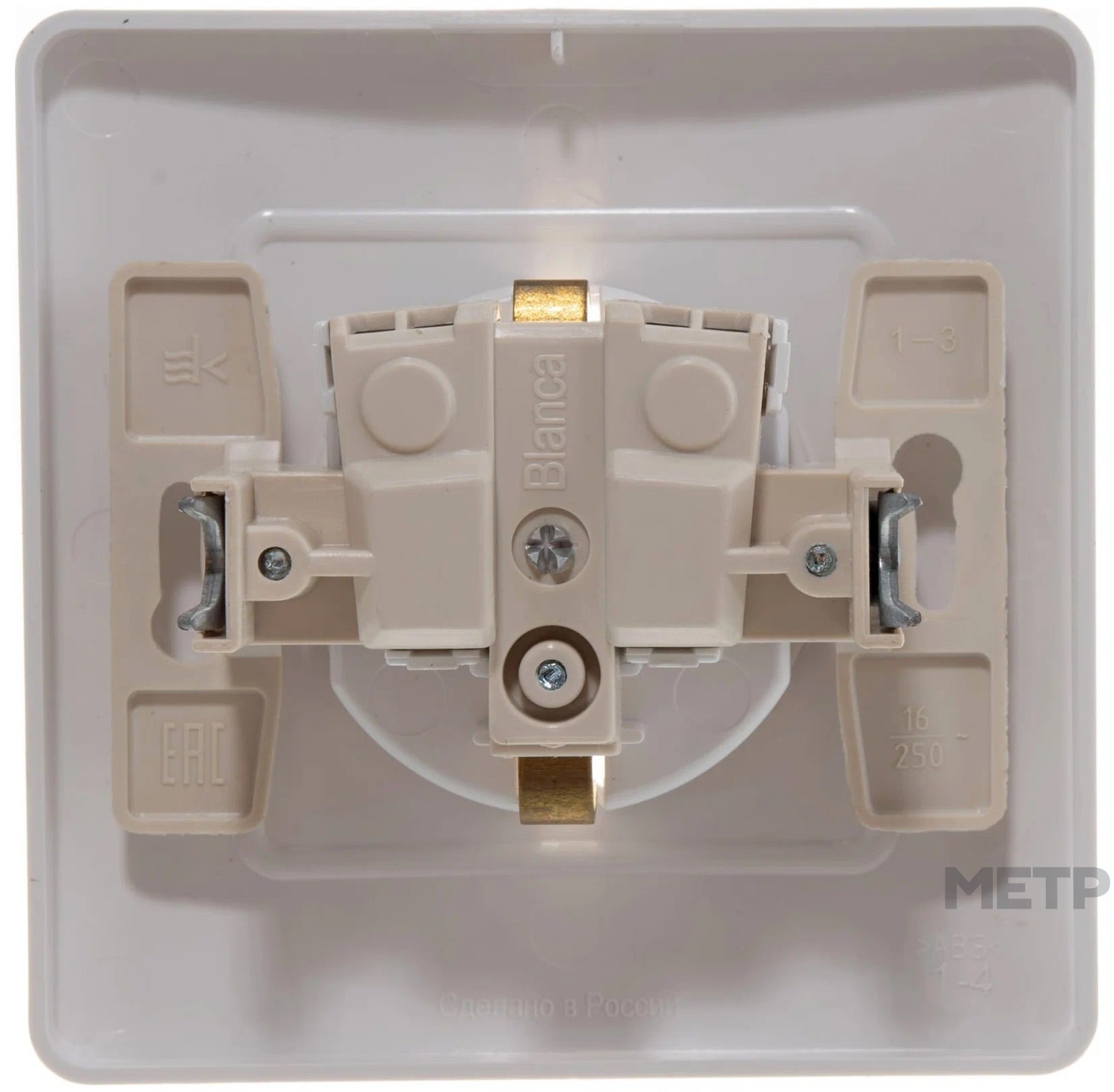 Розетка силовая BLANCA С/У 2К+З со шторками, белый предназначена для сетей до 250В, на ток до 16А. Заземляющий контакт обеспечивает дополнительную защиту от удара электрическим током. Корпус изделия выполнен из ABS-пластика. Производство - Россия.