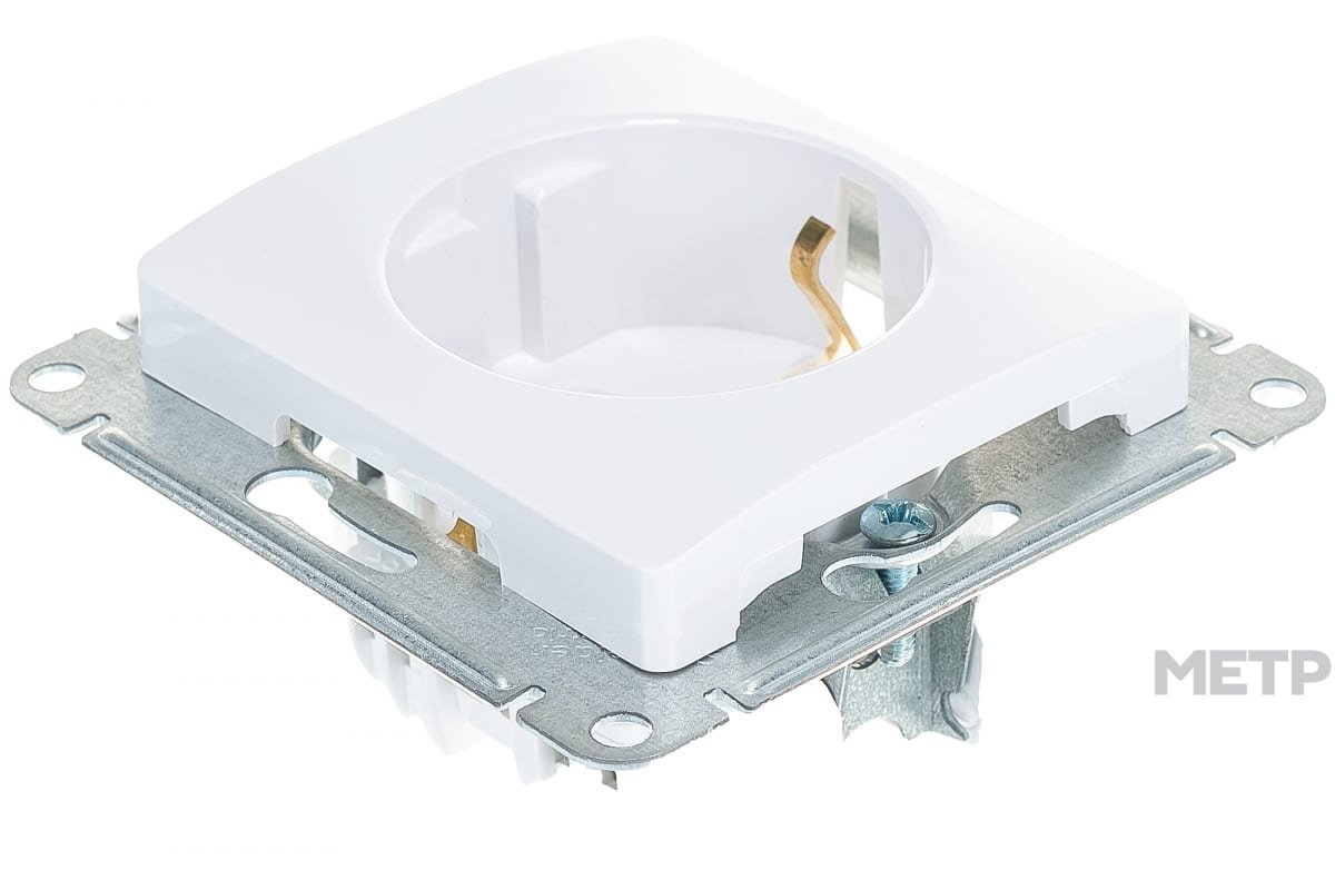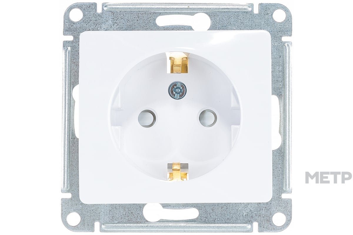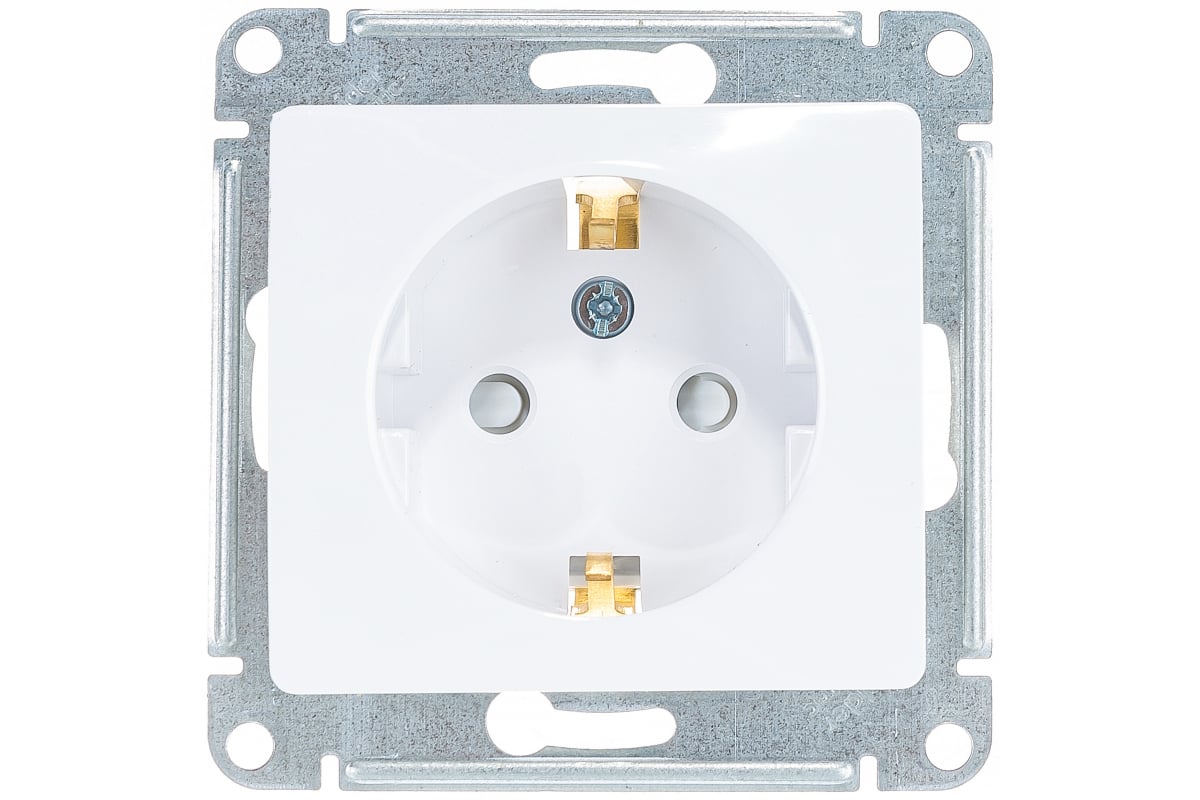 Розетка силовая встраиваемая Schneider Electric Glossa с заземлением и шторками, цвет белый подходит для сетей 250 В, на ток 16 А. Заземляющий контакт обеспечивает дополнительную защиту от удара электрическим током. При наличии заземления электрический потенциал уходит в землю, защищая человека. Розетка выполнена из материала PС+ASA, стойкого к УФ-излучению и появлению царапин. Эргономичные клеммы розеток расположены в один ряд. Прочный металлический суппорт