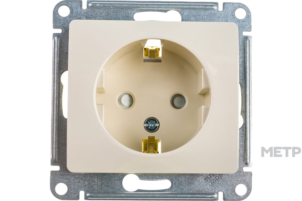 Розетка силовая встраиваемая Schneider Electric Glossa с заземлением и шторками, цвет бежeвый подходит для сетей 250 В, на ток 16 А. Заземляющий контакт обеспечивает дополнительную защиту от удара электрическим током. При наличии заземления электрический потенциал уходит в землю, защищая человека. Розетка выполнена из материала PС+ASA, стойкого к УФ-излучению и появлению царапин. Эргономичные клеммы розеток расположены в один ряд. Прочный металлический суппорт