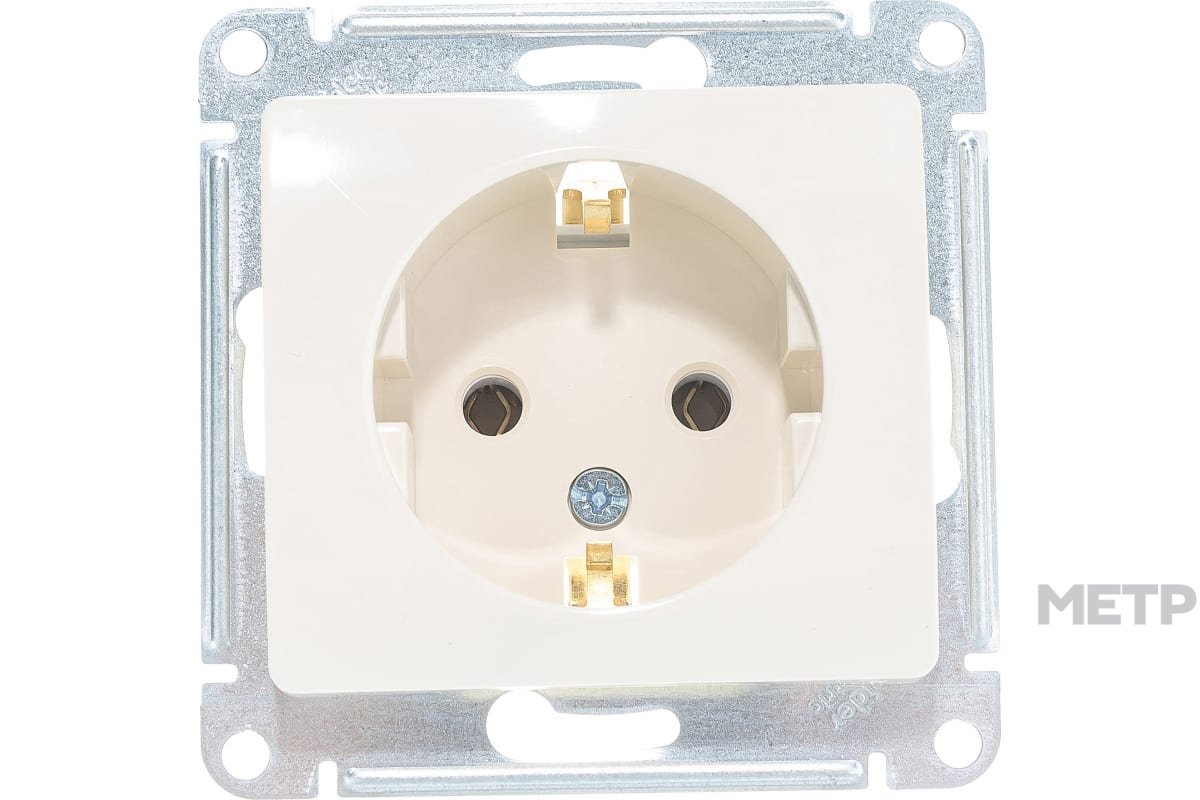 Розетка силовая встраиваемая Schneider Electric Glossa с заземлением, цвет бежевый подходит для сетей 250 В, на ток 16 А. Заземляющий контакт обеспечивает дополнительную защиту от удара электрическим током. При наличии заземления электрический потенциал уходит в землю, защищая человека. Розетка выполнена из материала PС+ASA, стойкого к УФ-излучению и появлению царапин. Эргономичные клеммы розеток расположены в один ряд. Прочный металлический суппорт