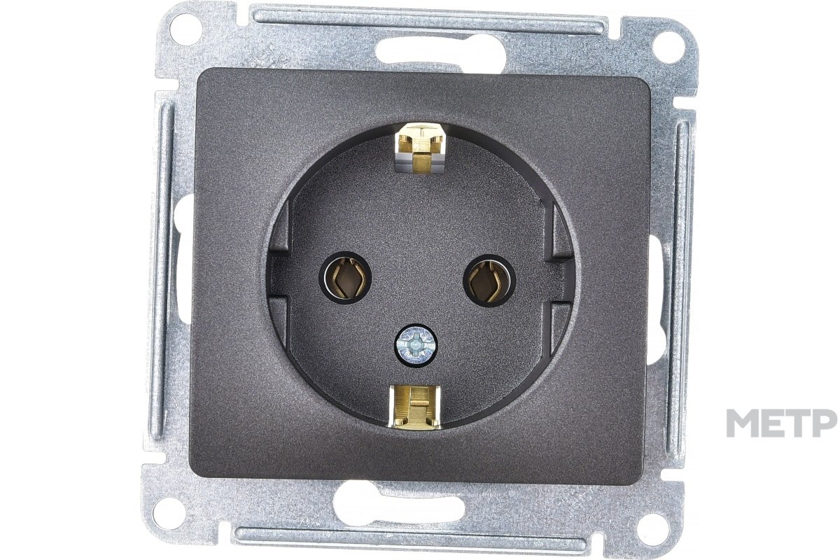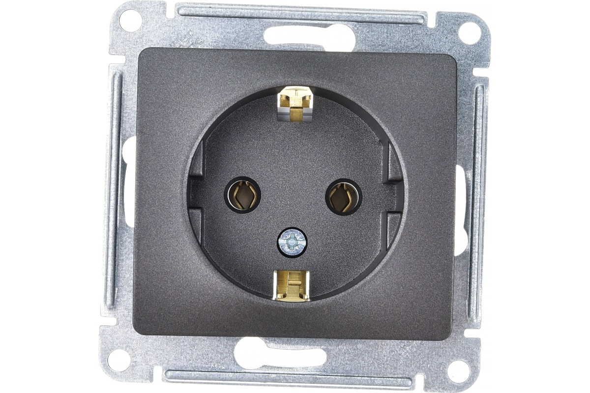 Розетка силовая встраиваемая Schneider Electric Glossa с заземлением, цвет графит подходит для сетей 250 В, на ток 16 А. Заземляющий контакт обеспечивает дополнительную защиту от удара электрическим током. При наличии заземления электрический потенциал уходит в землю, защищая человека. Розетка выполнена из материала PС+ASA, стойкого к УФ-излучению и появлению царапин. Эргономичные клеммы розеток расположены в один ряд. Прочный металлический суппорт