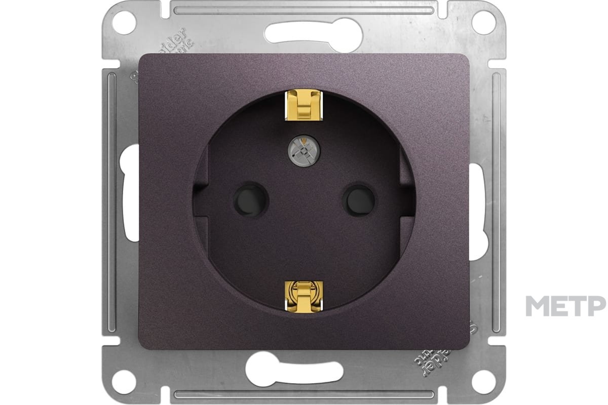 Розетка силовая встраиваемая Schneider Electric Glossa с заземлением и шторками, цвет сиреневый туман подходит для сетей 250 В, на ток 16 А. Заземляющий контакт обеспечивает дополнительную защиту от удара электрическим током. При наличии заземления электрический потенциал уходит в землю, защищая человека. Розетка выполнена из материала PС+ASA, стойкого к УФ-излучению и появлению царапин. Эргономичные клеммы розеток расположены в один ряд. Прочный металлический суппорт