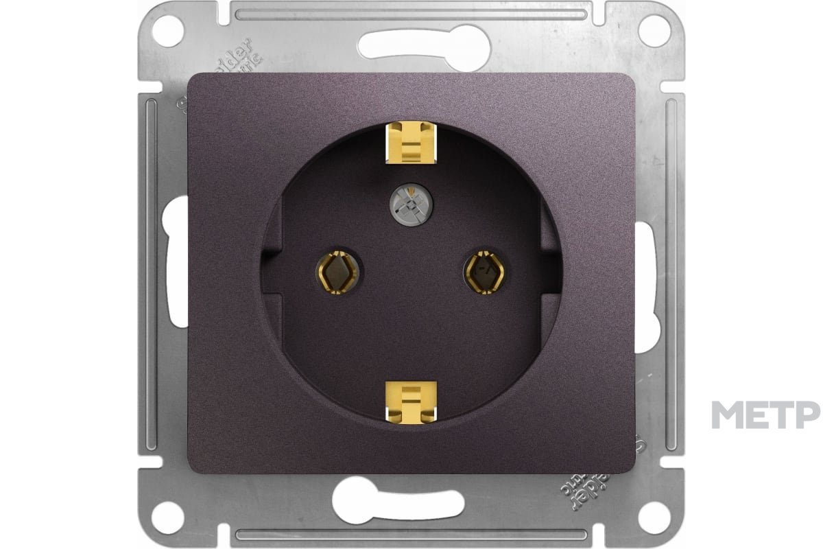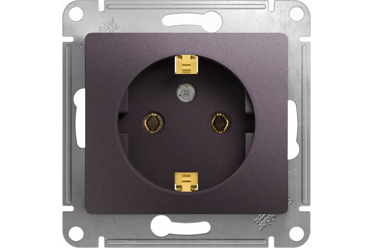 Розетка силовая встраиваемая Schneider Electric Glossa с заземлением, цвет сиреневый туман подходит для сетей 250 В, на ток 16 А. Заземляющий контакт обеспечивает дополнительную защиту от удара электрическим током. При наличии заземления электрический потенциал уходит в землю, защищая человека. Розетка выполнена из материала PС+ASA, стойкого к УФ-излучению и появлению царапин. Эргономичные клеммы розеток расположены в один ряд. Прочный металлический суппорт