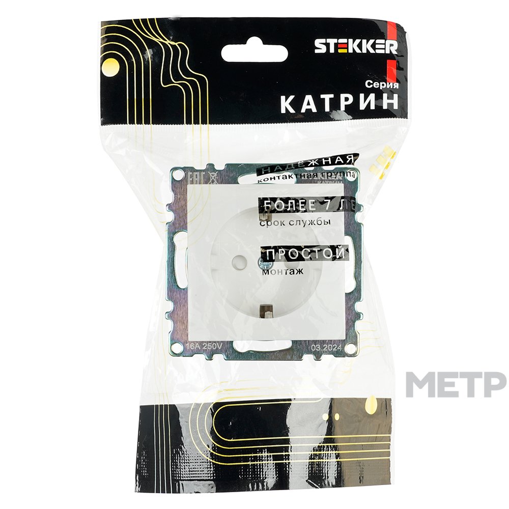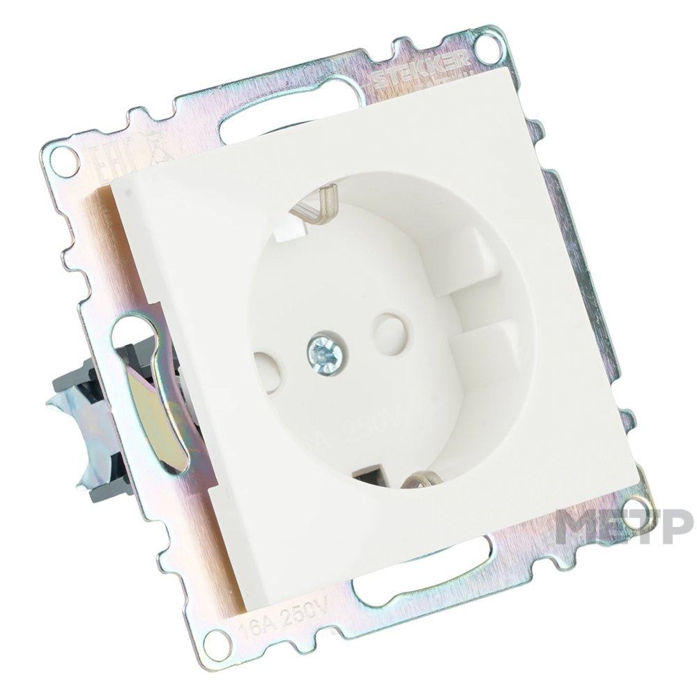 Розетка силовая встраиваемая STEKKER Катрин с заземлением и шторками, цвет белый является образцом элегантного стиля, который подойдет самому взыскательному покупателю.