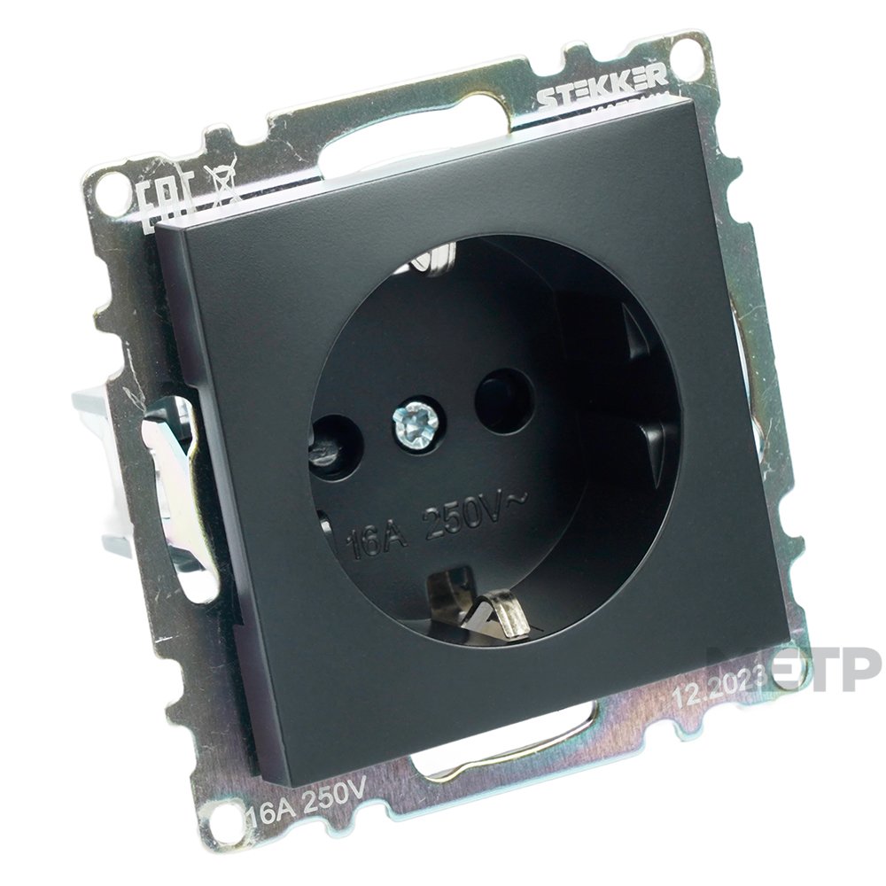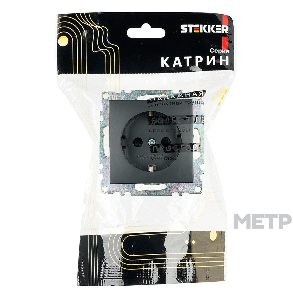 Розетка силовая встраиваемая STEKKER Катрин с заземлением и шторками, цвет черный является образцом элегантного стиля, который подойдет самому взыскательному покупателю.