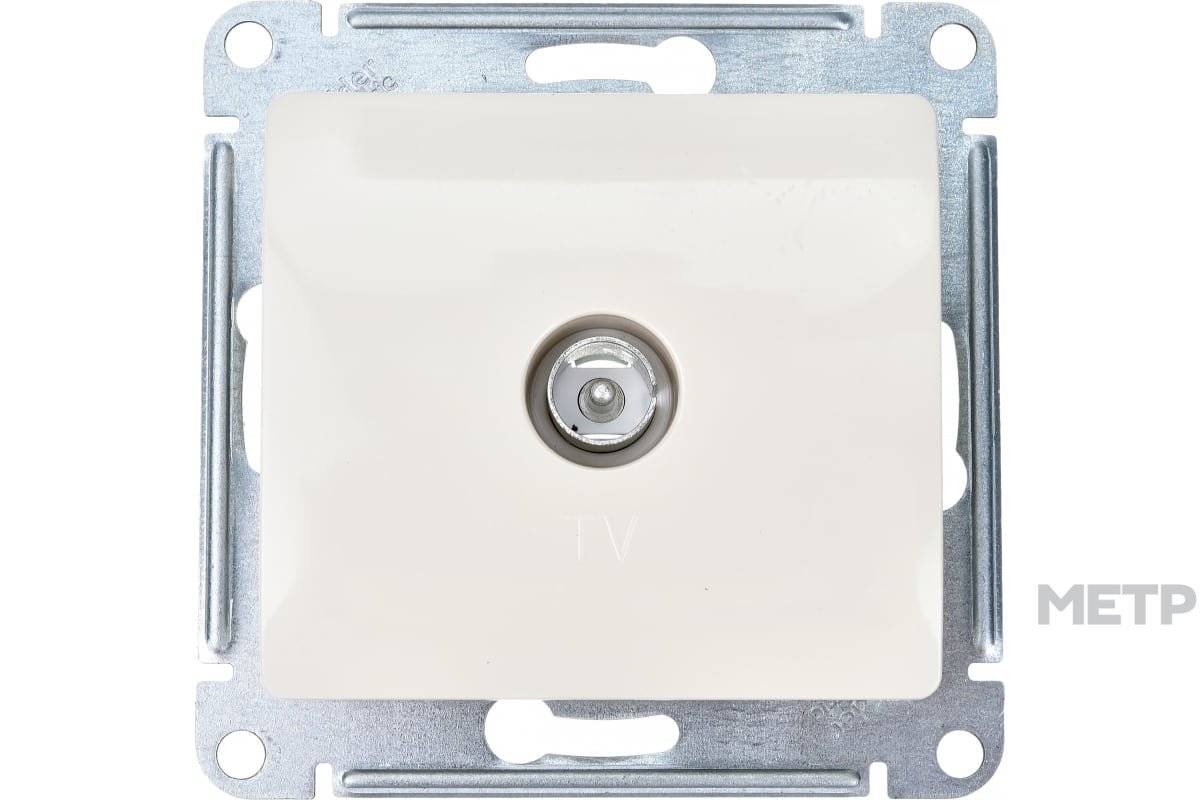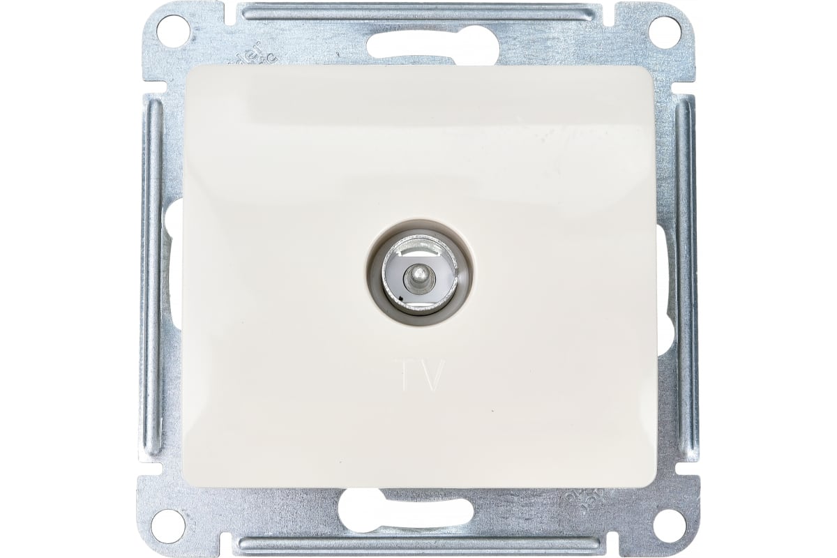 Розетка TV встраиваемая Glossa, цвет бежeвый предназначена для подключения бытовой теле-, видео- и радиоаппаратуры к антенному кабелю при внутренней установке в жилых, общественных и промышленных помещениях. Розетка выполнена из материала PС+ASA, стойкого к УФ-излучению и появлению царапин.