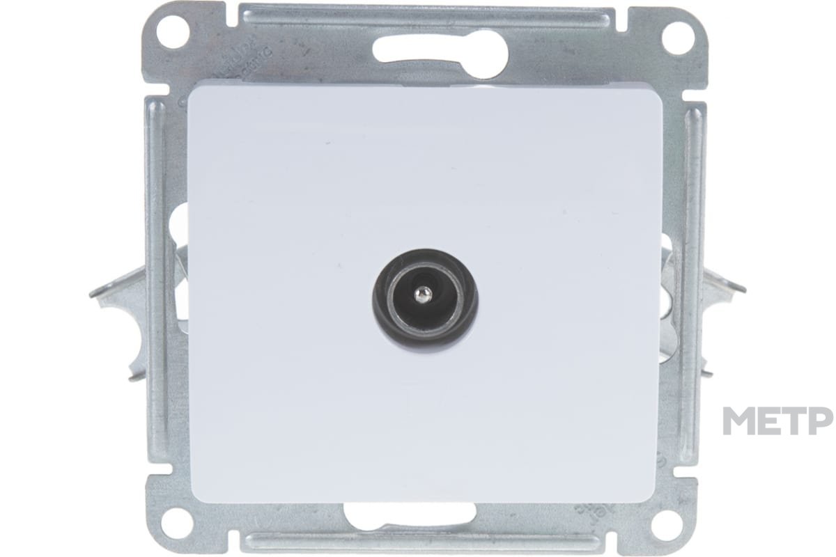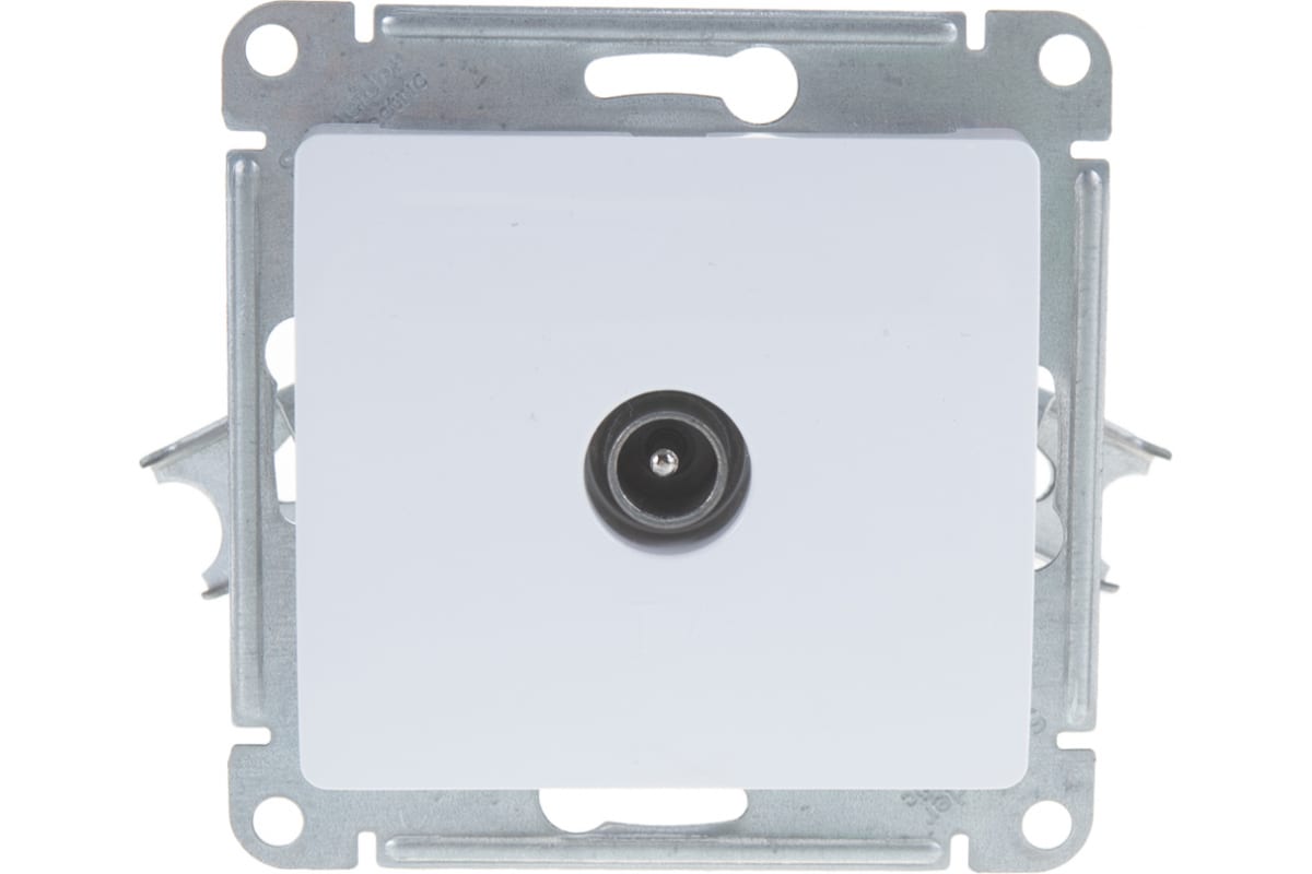 Розетка TV встраиваемая Glossa, цвет белый предназначена для подключения бытовой теле-, видео- и радиоаппаратуры к антенному кабелю при внутренней установке в жилых, общественных и промышленных помещениях. Розетка выполнена из материала PС+ASA, стойкого к УФ-излучению и появлению царапин.