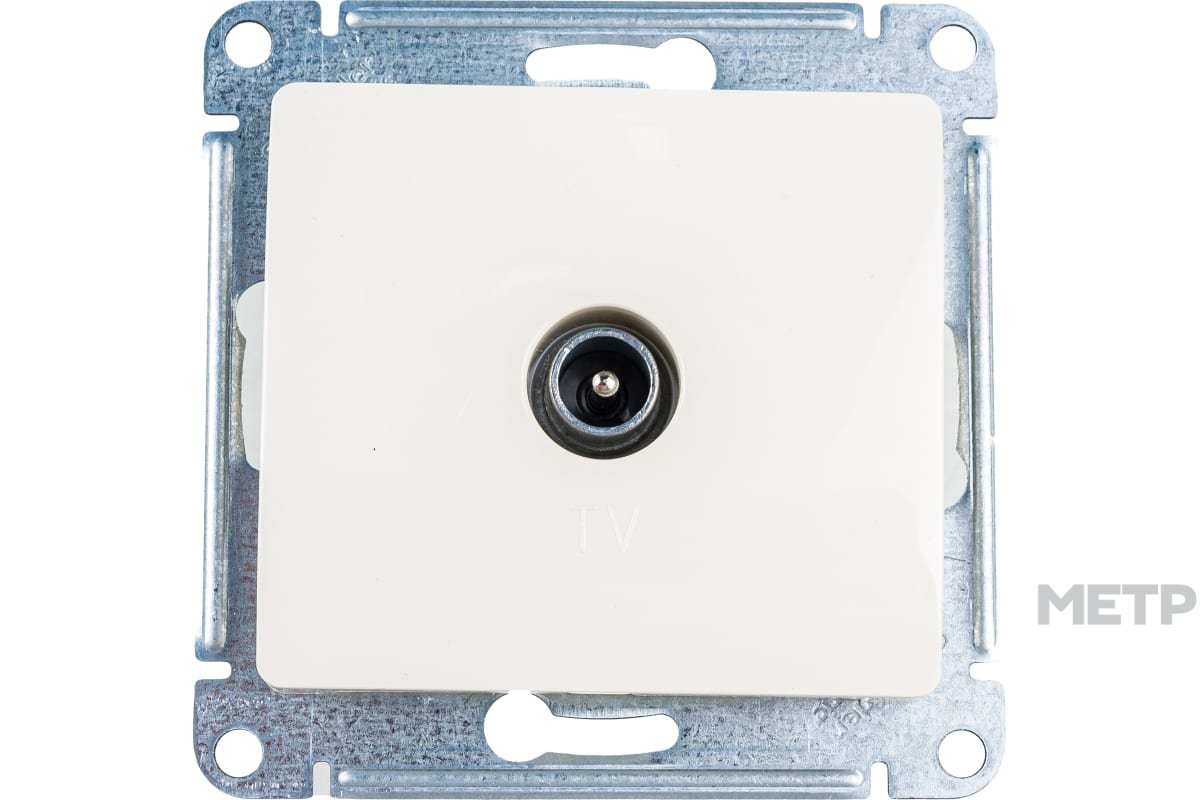 Розетка TV встраиваемая Glossa, цвет бежевый предназначена для подключения бытовой теле-, видео- и радиоаппаратуры к антенному кабелю при внутренней установке в жилых, общественных и промышленных помещениях. Розетка выполнена из материала PС+ASA, стойкого к УФ-излучению и появлению царапин.